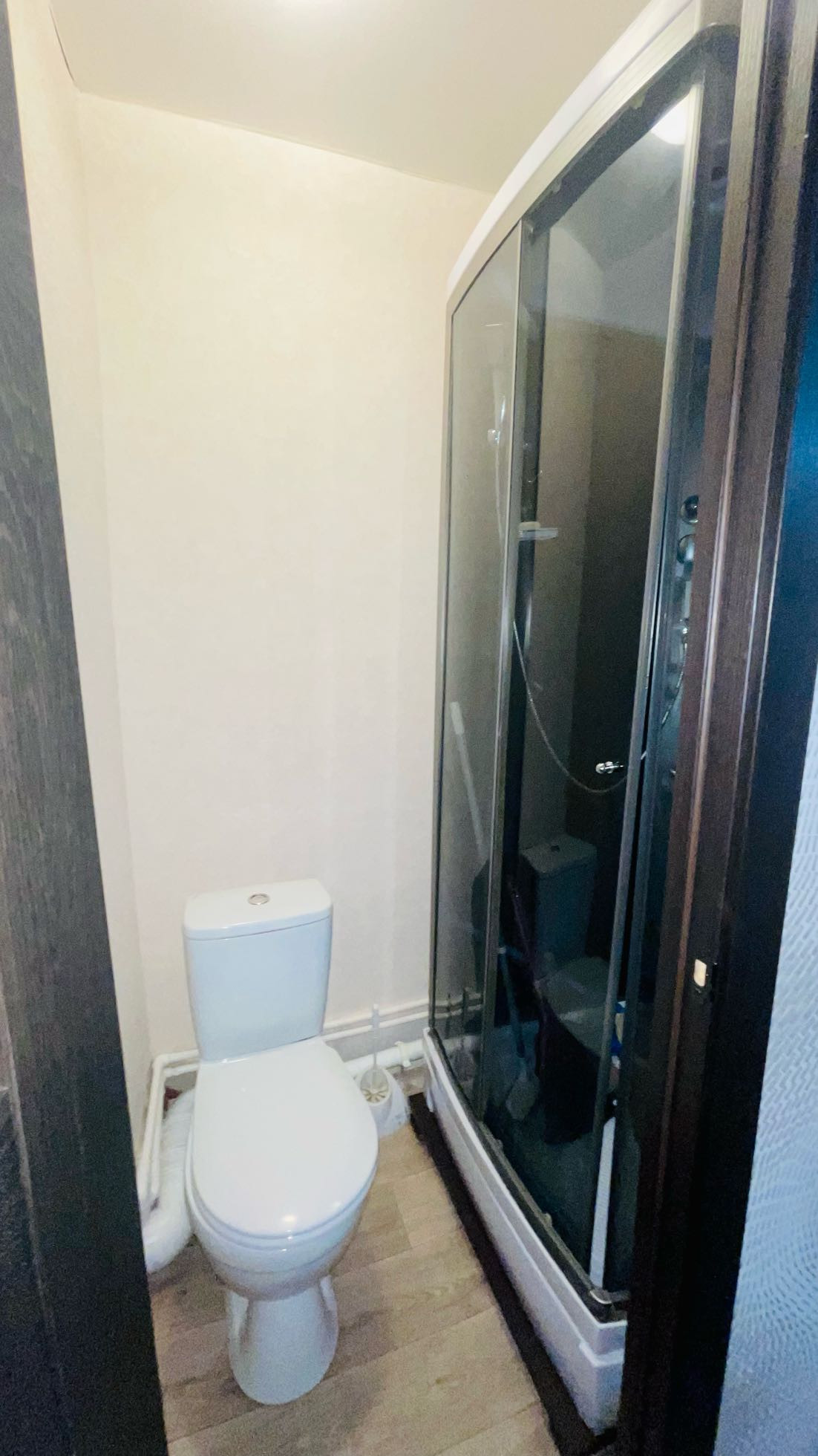 Со своим санузлом,новая душевая кабина и унитаз.