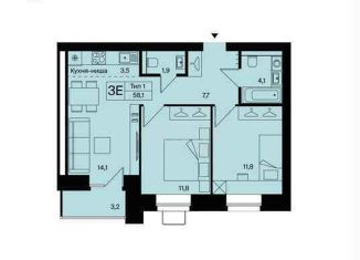 Общая площадь: 55.8 м2
