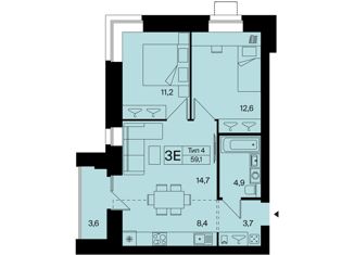 Общая площадь: 59 м2
