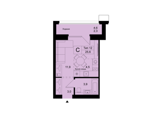 Общая площадь: 26 м2