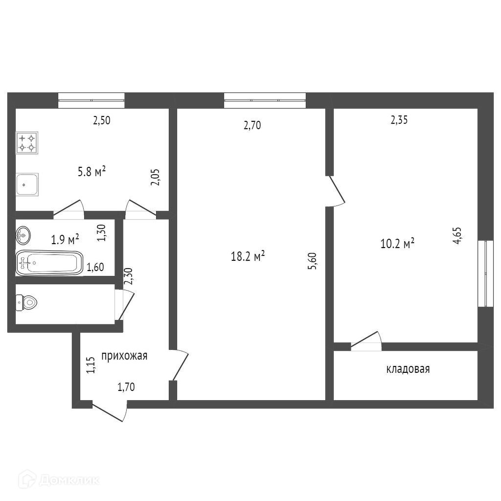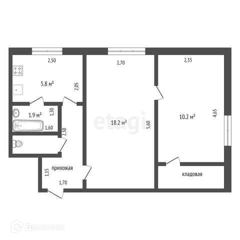 Общая площадь 41.5 м2