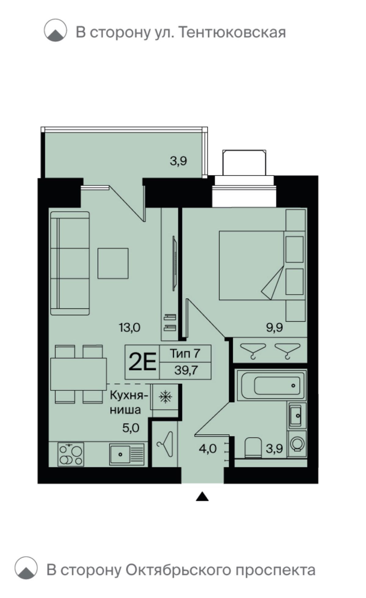 Общая площадь 39.7 м2