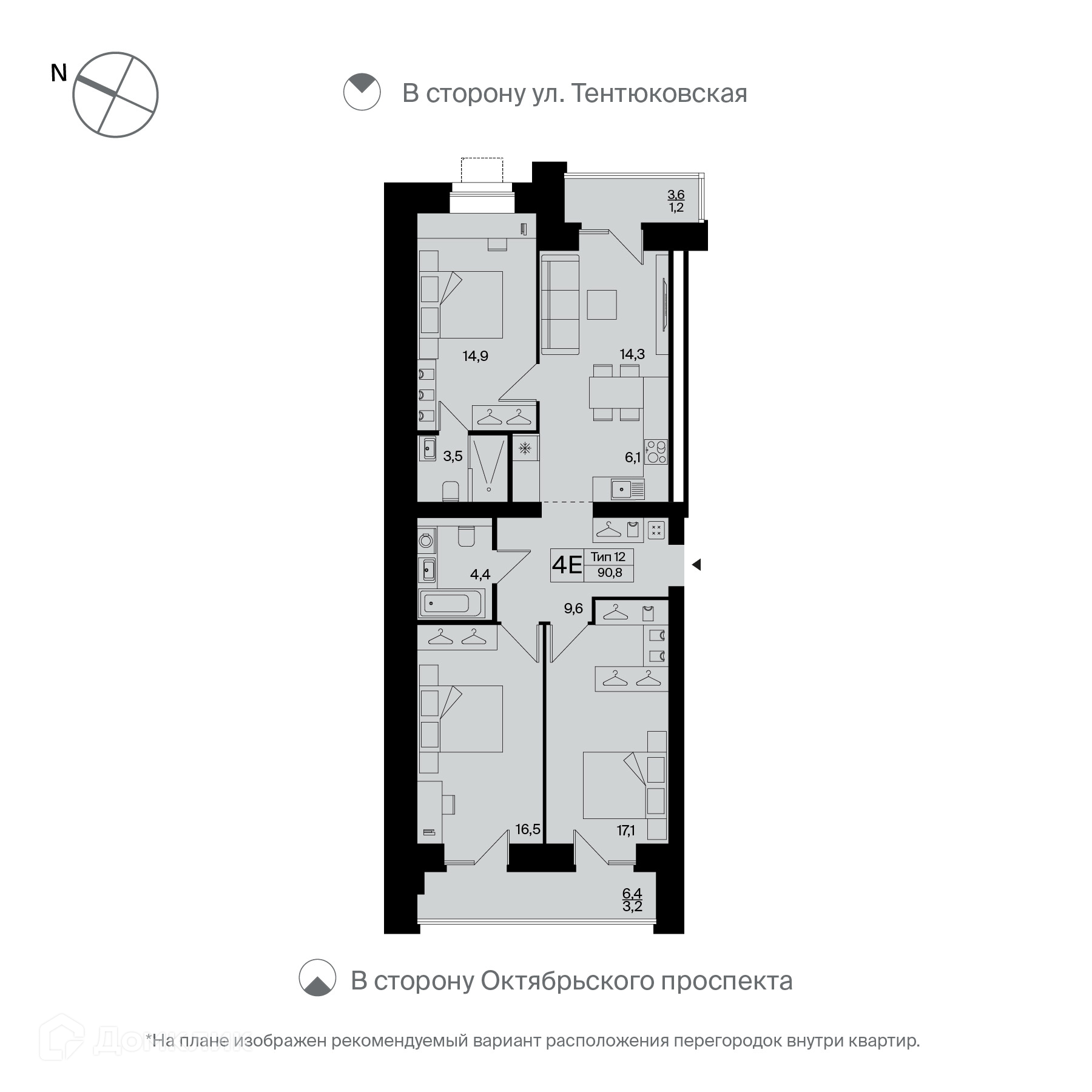 Планировка предполагает просторную кухню-гостиную и 3 раздельные спальни (одна из них - мастер-спальня со своим санузлом). Также в квартире есть второй совмещенный санузел, панорамные лоджия и балкон (на лоджию выход из 2-х комнат). Вид как на улицу, так и во двор. На такой большой площади Вы будете наслаждаться жизнью большой дружной семьёй.