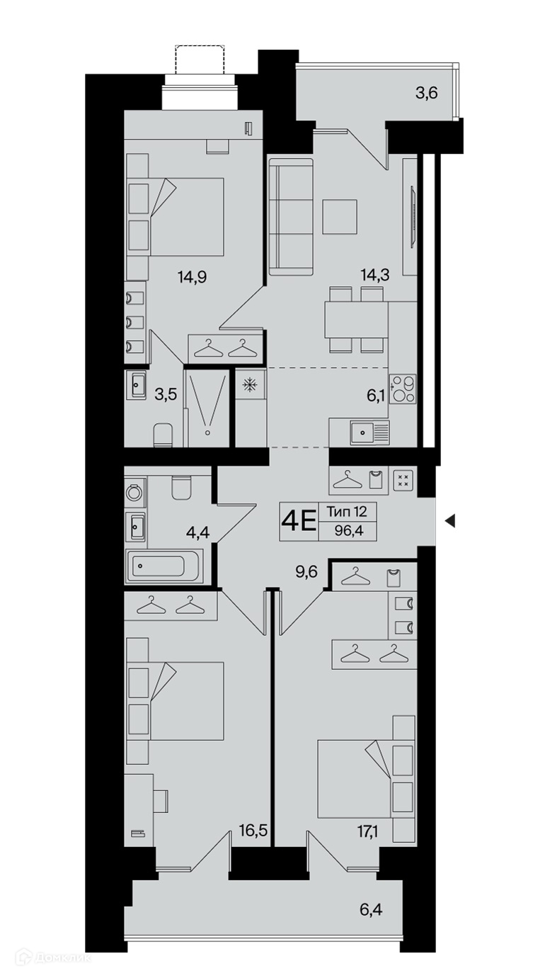 Общая площадь 96 м2