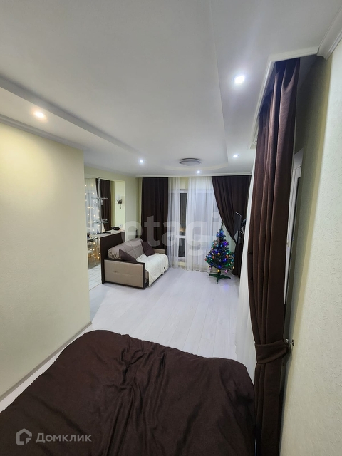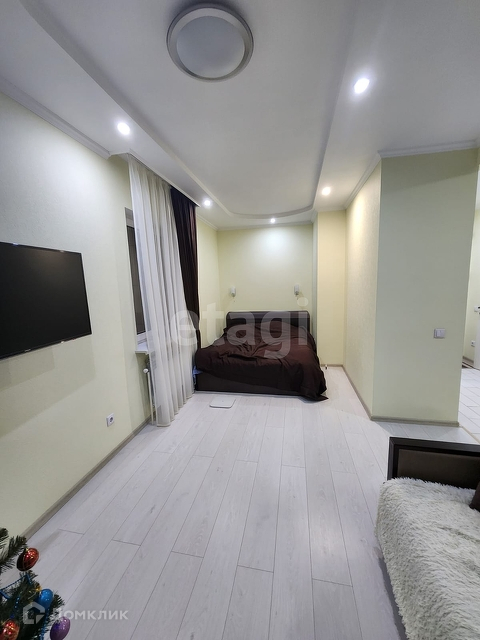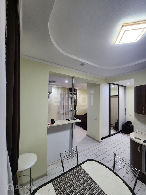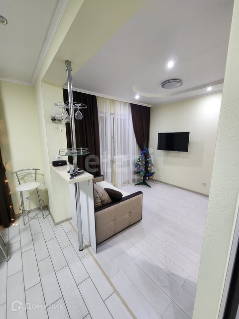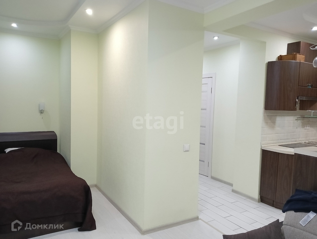 Квартира-студия в ЖК Олимп, 5 /17 эт дома 2015 года постройки. Пол в прихожей и кухне керамическая плитка, в комнате ламинат. На стенах обои под покраску. Потолок гипсокартон. С/у в кафеле, потолок натяжной, есть гигиенический душ, водонагреватель. Радиаторы с регуляторами тепла, зимой достаточно включать только один из радиаторов, в квартире тепло. Лоджия остеклена пластиком, на полу керамогранит. Зимой за услуги ЖКХ выходит 3500,00.
