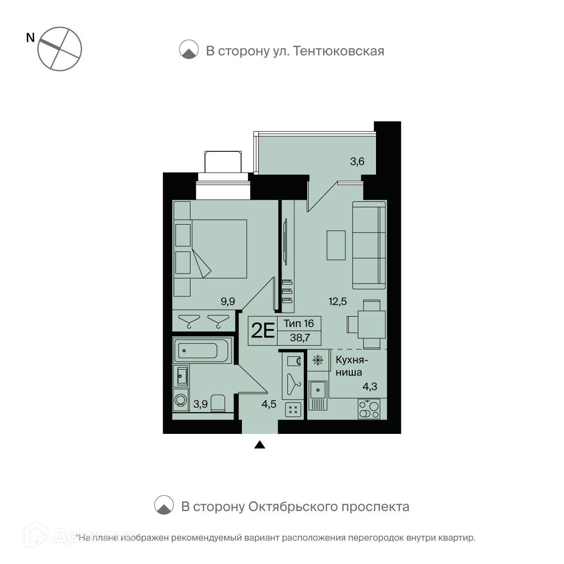 Общая площадь 38.7 м2