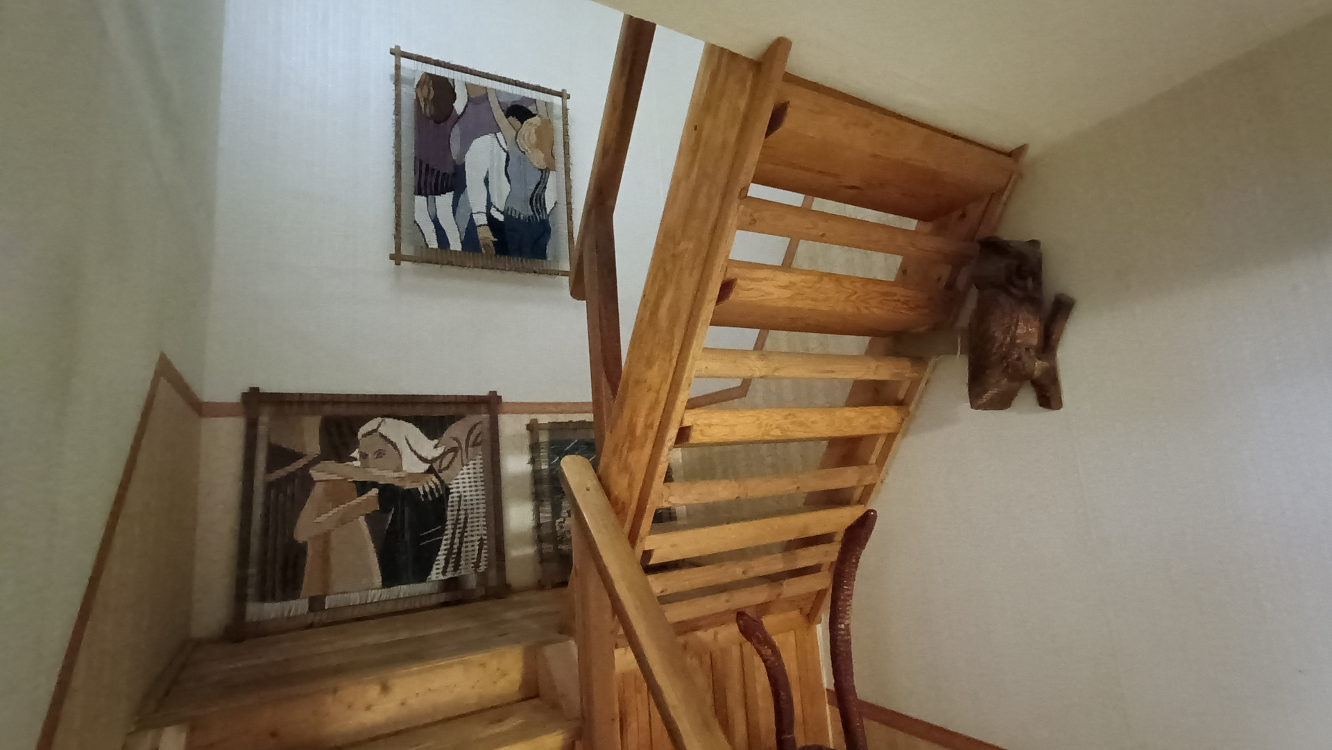 Кухня большая 9,1 кв.м. Всем хватит места за обеденным столом. Два балкона на каждом этаже, один из них застеклен.
