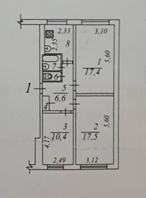Жилая площадь 45.4 м2