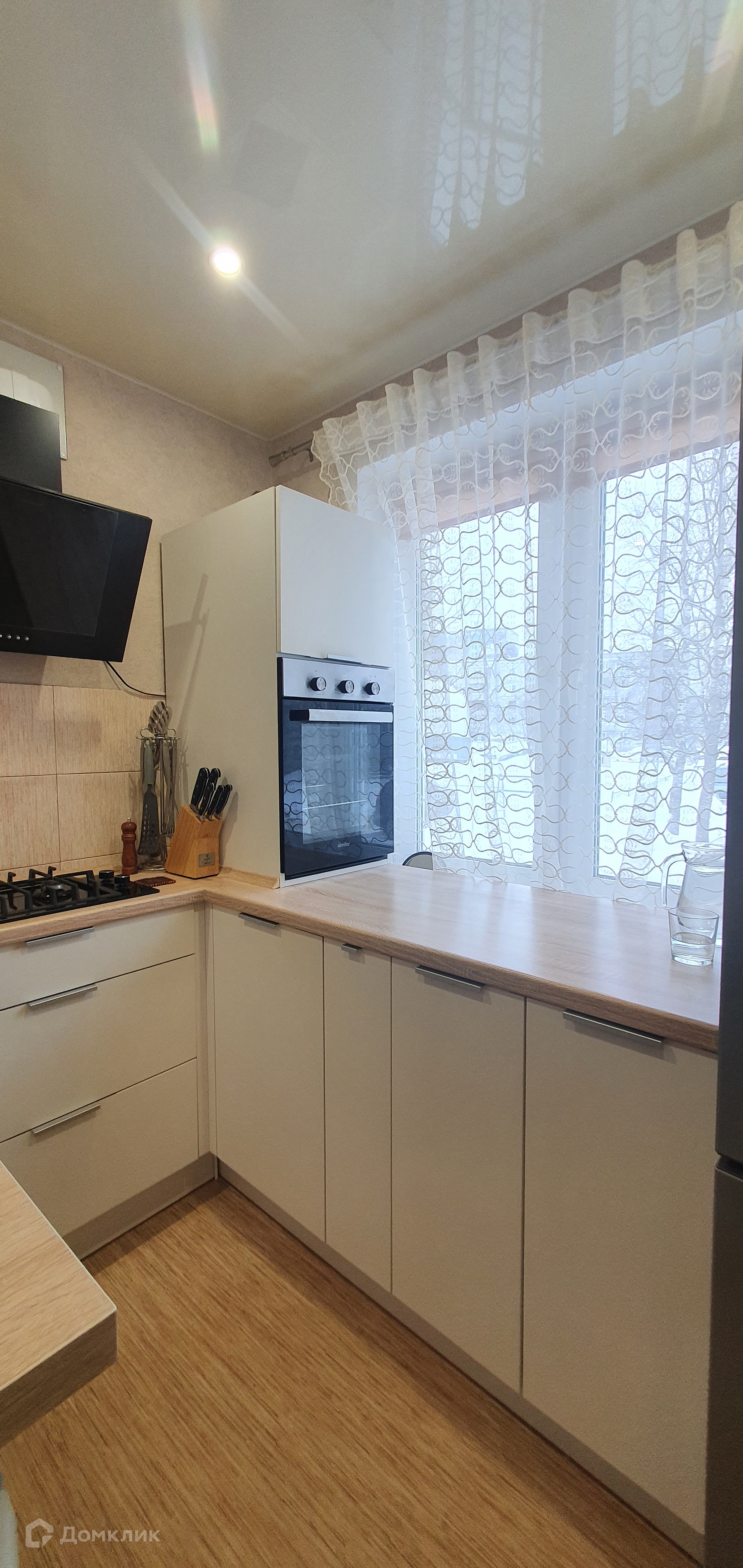Остается: кухонный гарнитур  установлена 1 год назад , встроенная техника вытяжка, варочная панель, духовой шкаф , барная стойка и стулья, встроенные шкафы и гардеробная. Мебель в зале не остается.