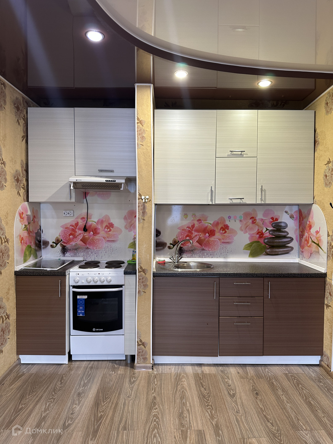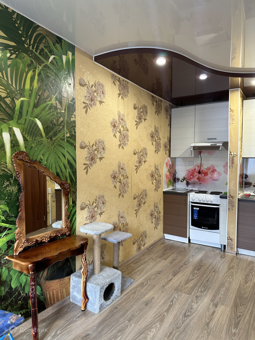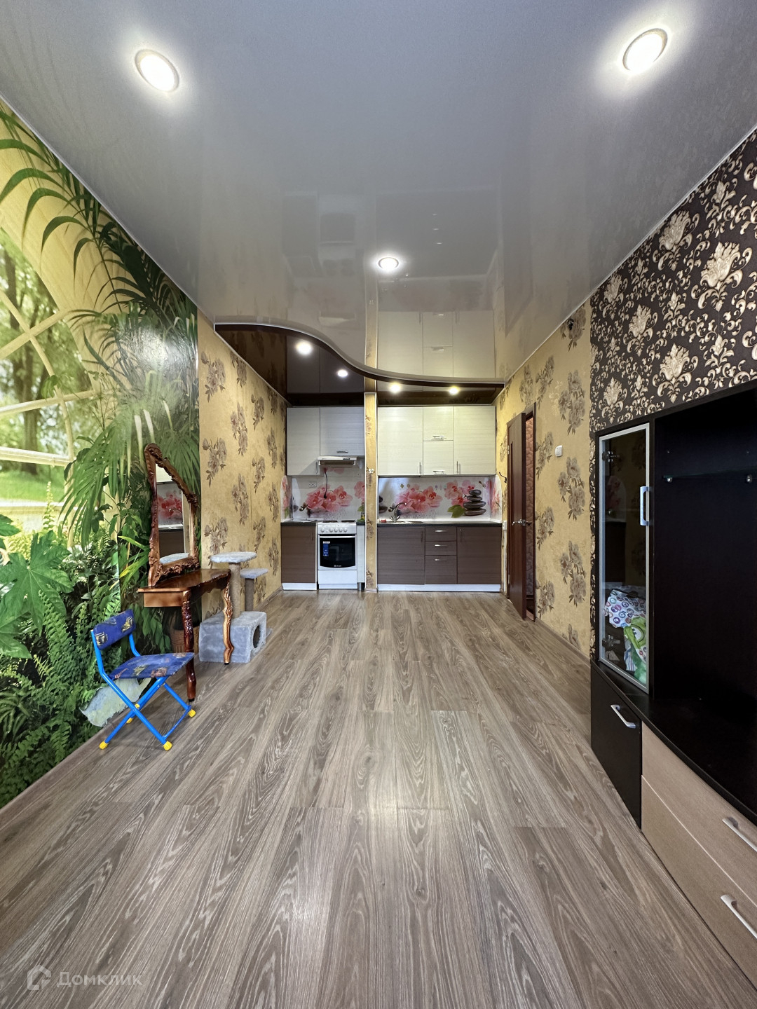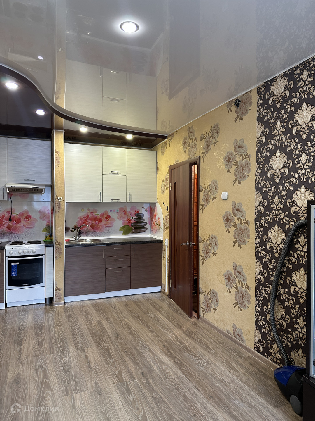 В Квартире установлены пластиковые окна, в комнате с кухней натяжные потолки и ламинат.
