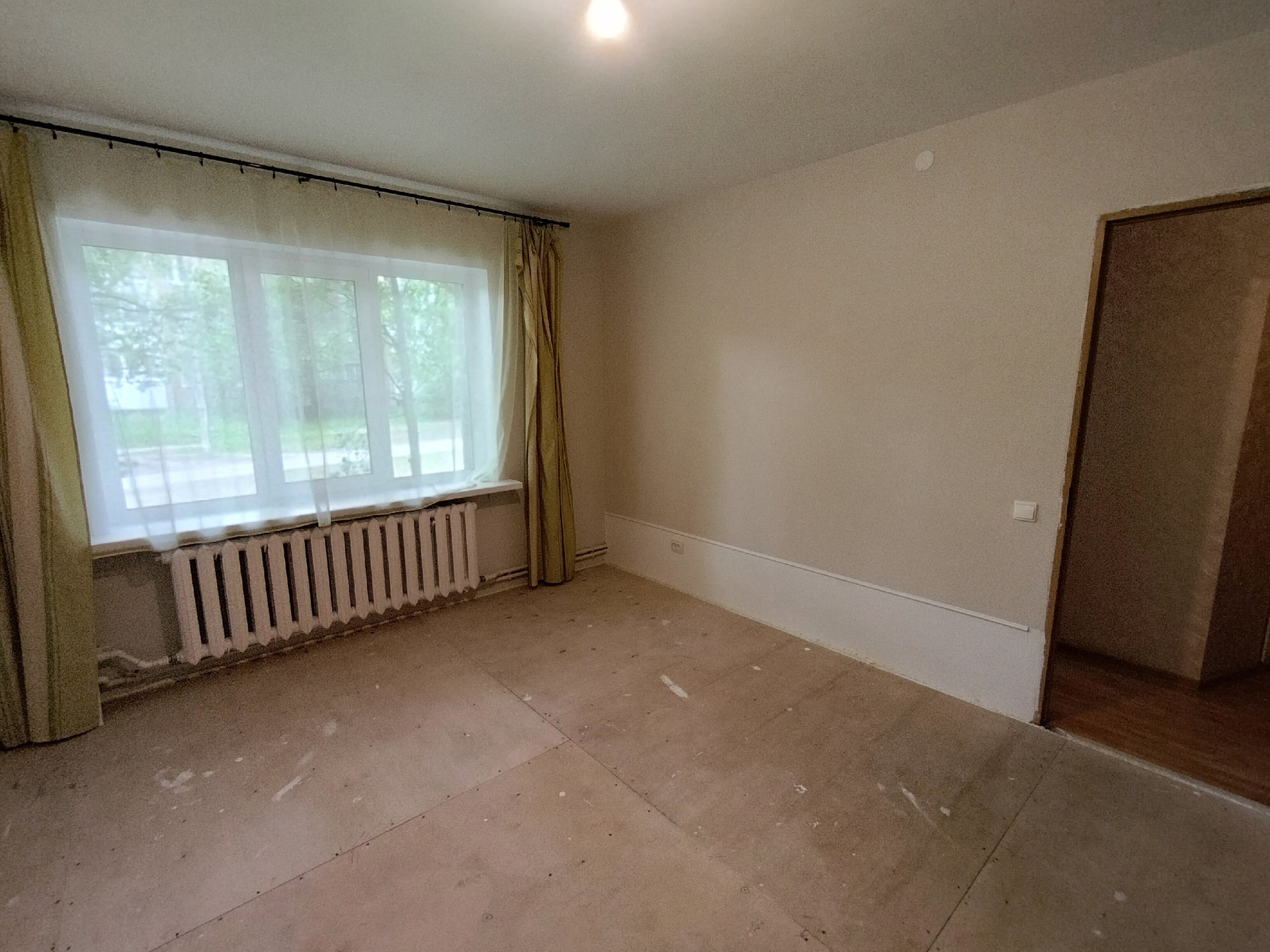 кухня -6,6 кв.м., в комнате заменены полы, выровнены стены, потолок, осталось постелить напольное покрытие ( на усмотрение нового владельца), один собственник, без обременений.