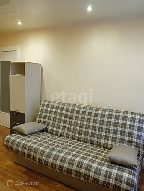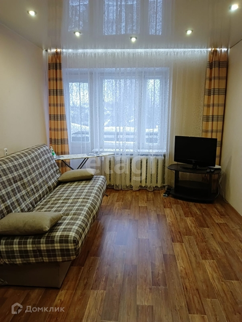 Общая площадь квартиры 31,2 кв.м, жилая 16,6, кухня 7 кв.м. Санузел совмещённый, установлен счётчик холодной воды (срок годности до 03.2028). Горячее водоснабжение круглый год. Квартира в хорошем состоянии, зимой теплая. Натяжные потолки в кухне и комнате, на полу - линолеум. Материал окон и дверей - деревянные. Длина балкона 3 м, не застекленный. Домофон.