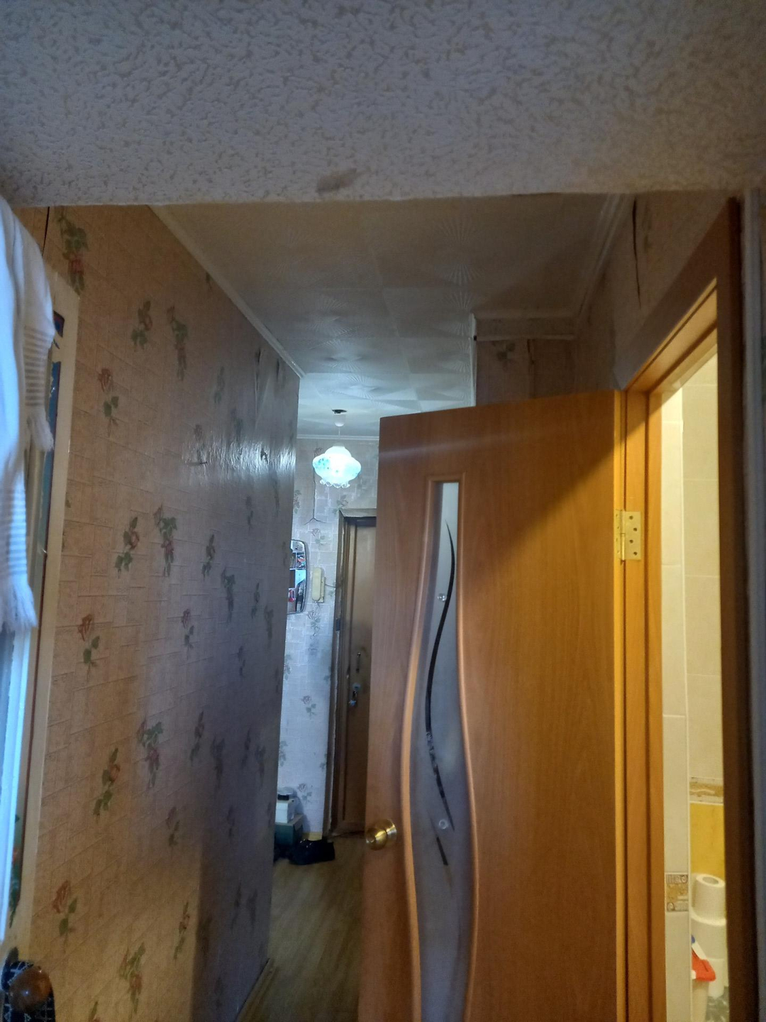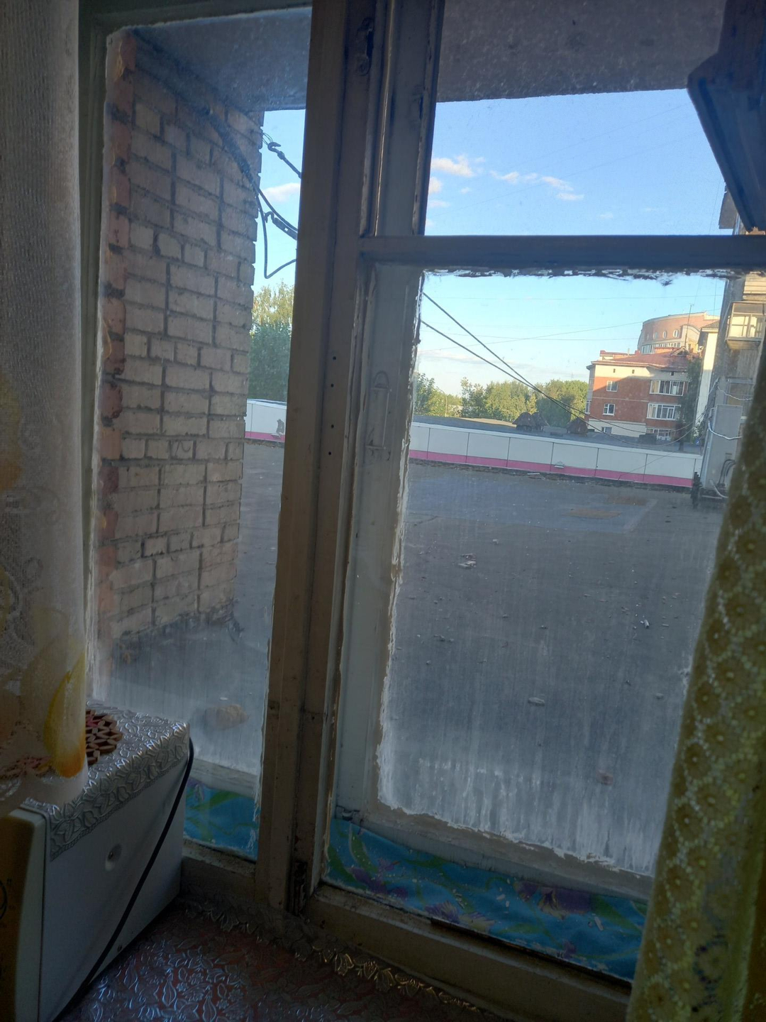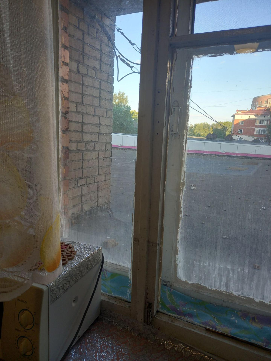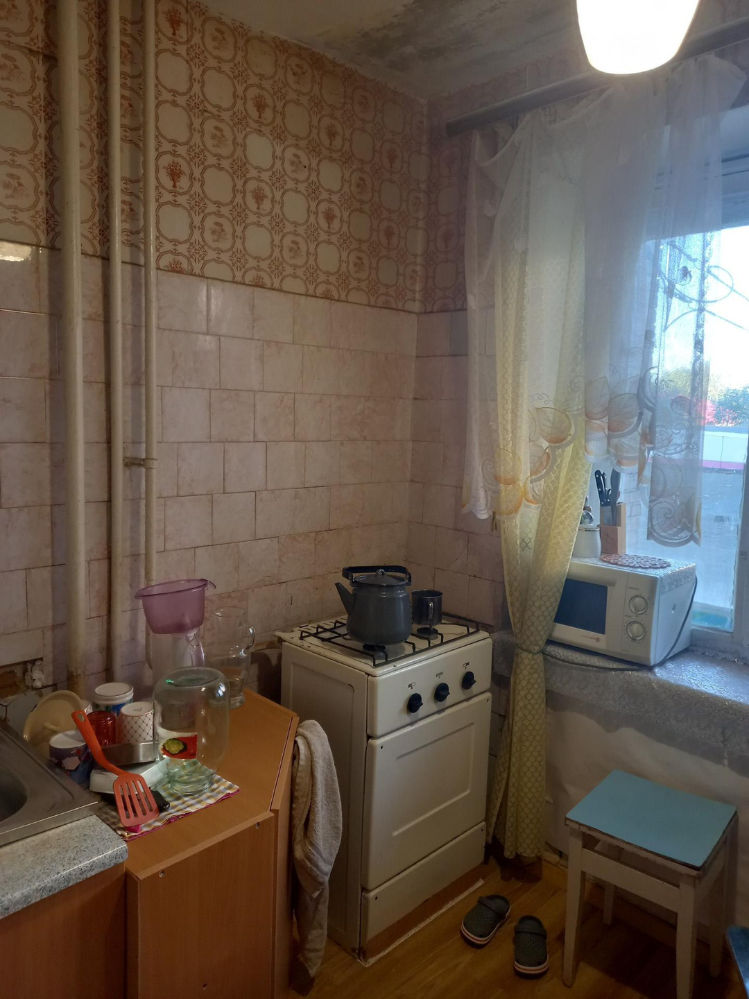 В квартире требуется ремонт.Этаж первый, но фактически второй.Балкон отсутствует.Окно с кухни смотрит на козырёк магазина.