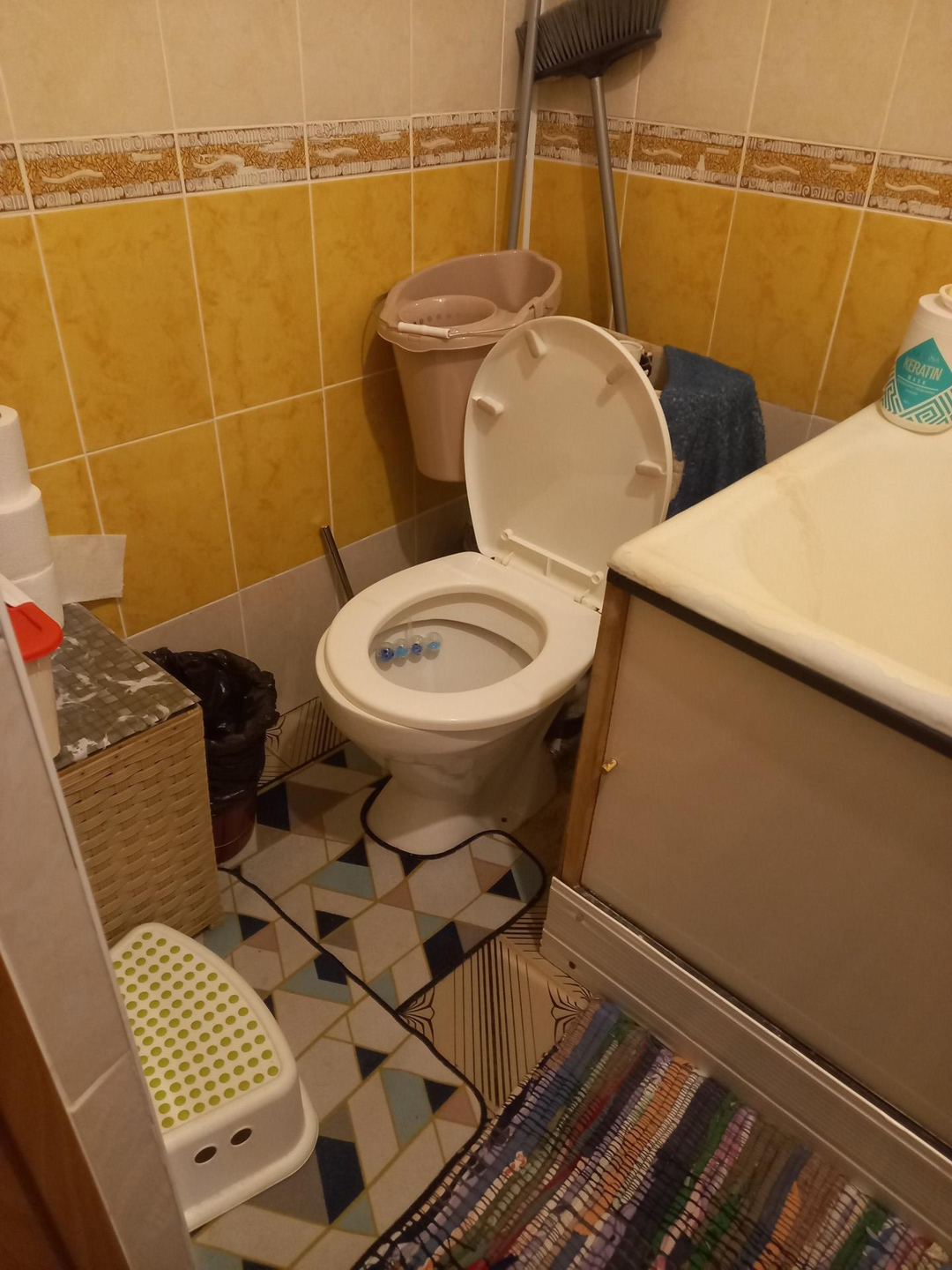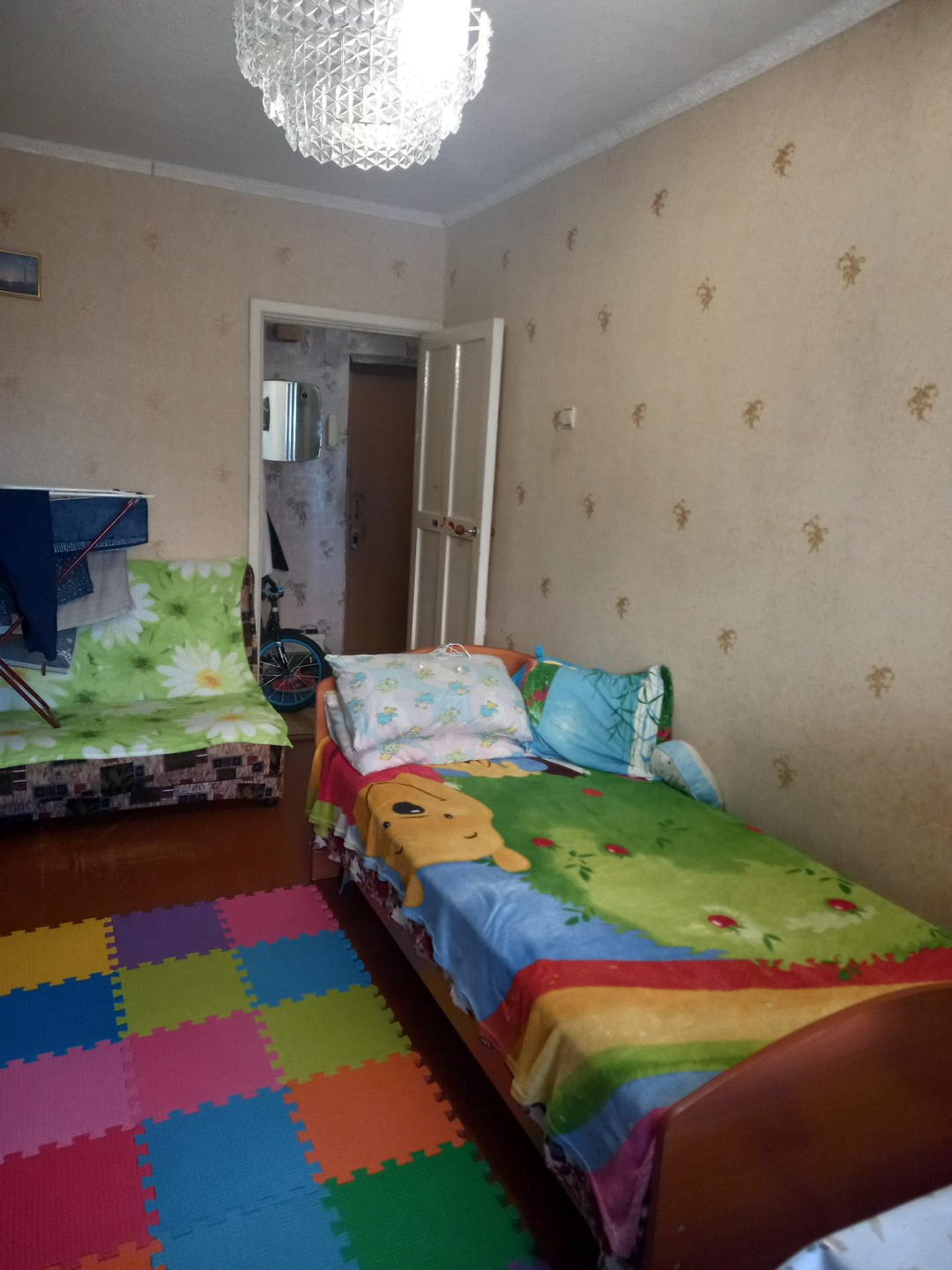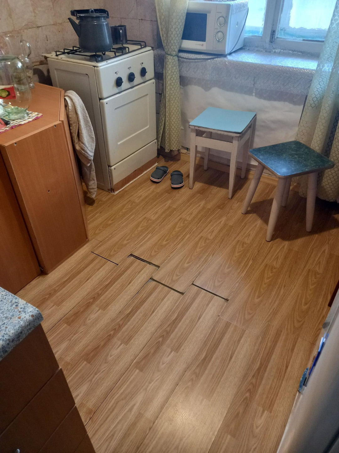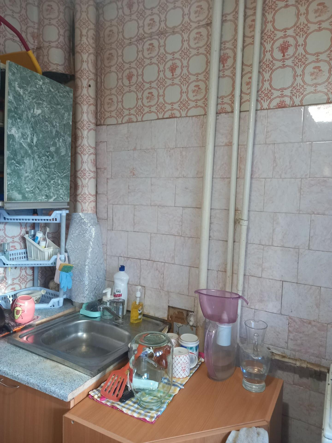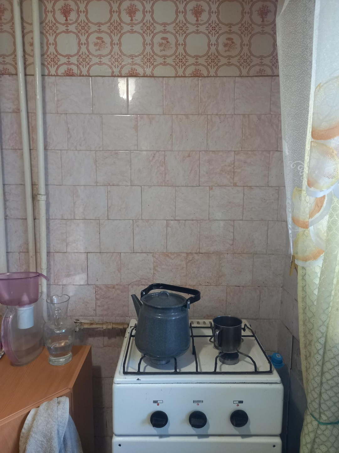 В квартире требуется ремонт.Этаж первый, но фактически второй.Балкон отсутствует.Окно с кухни смотрит на козырёк магазина.