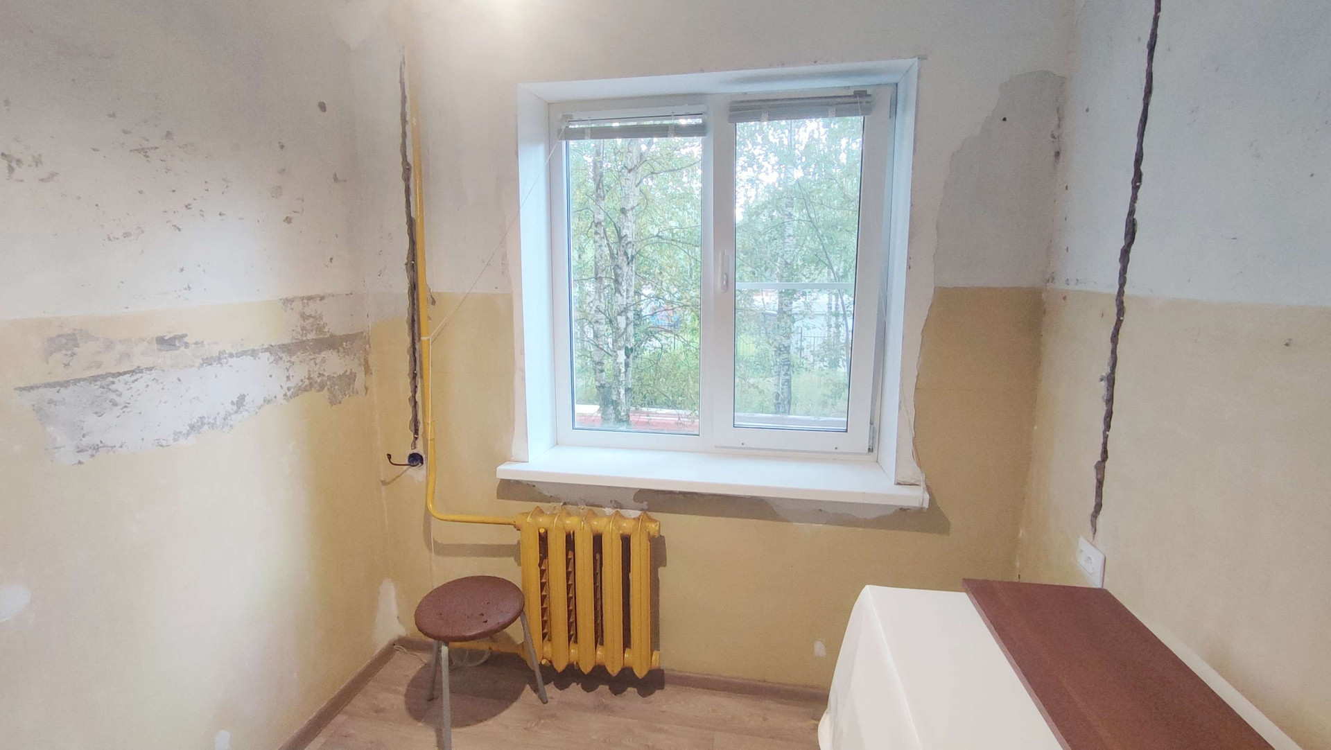 Квартира готова к чистовому ремонту, заменена вся электрика, поменяны двери, сделаны полы, окна-стеклопакеты. В ванной полностью сделан ремонт, всё новое!