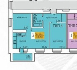 Общая площадь 54.37 м2