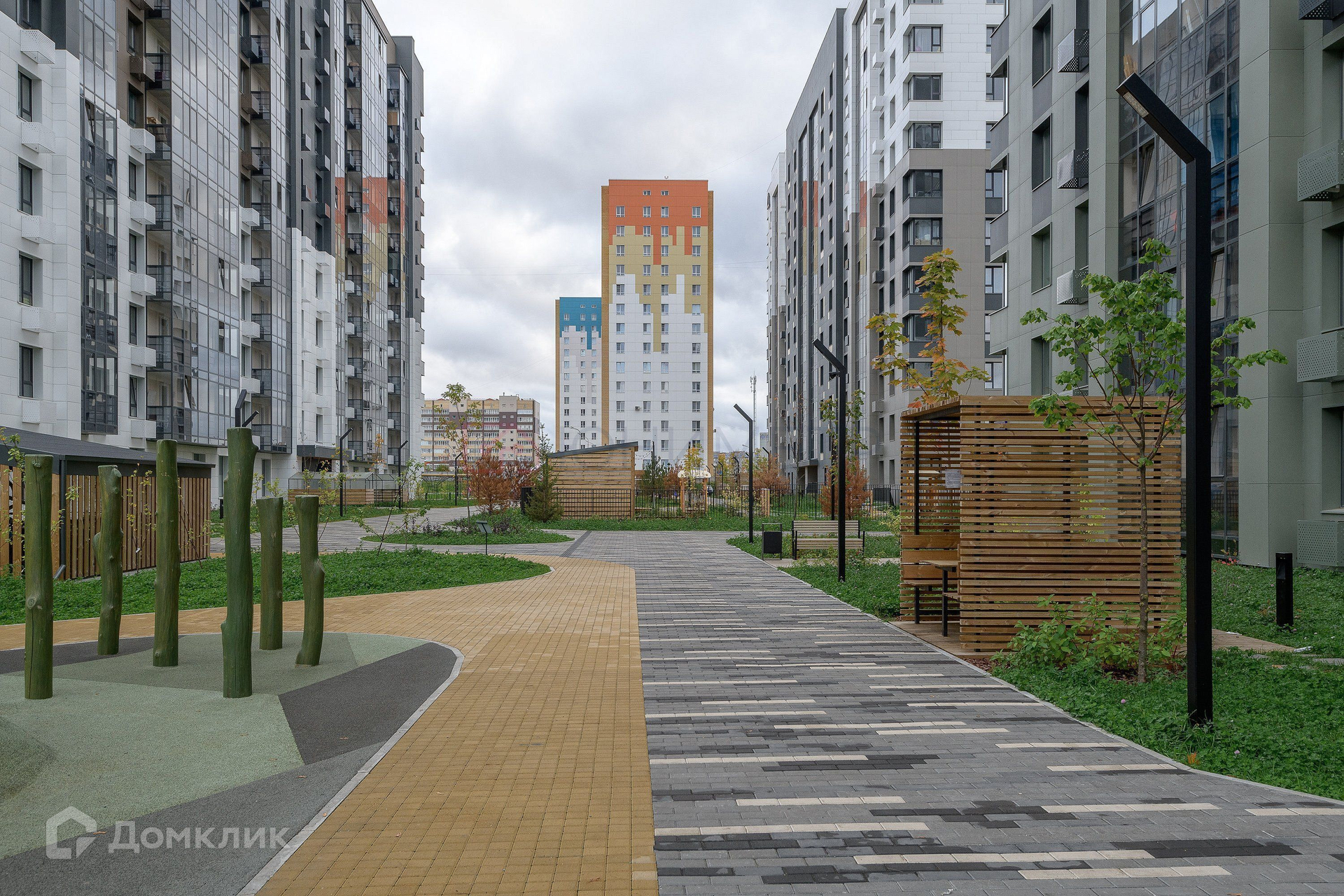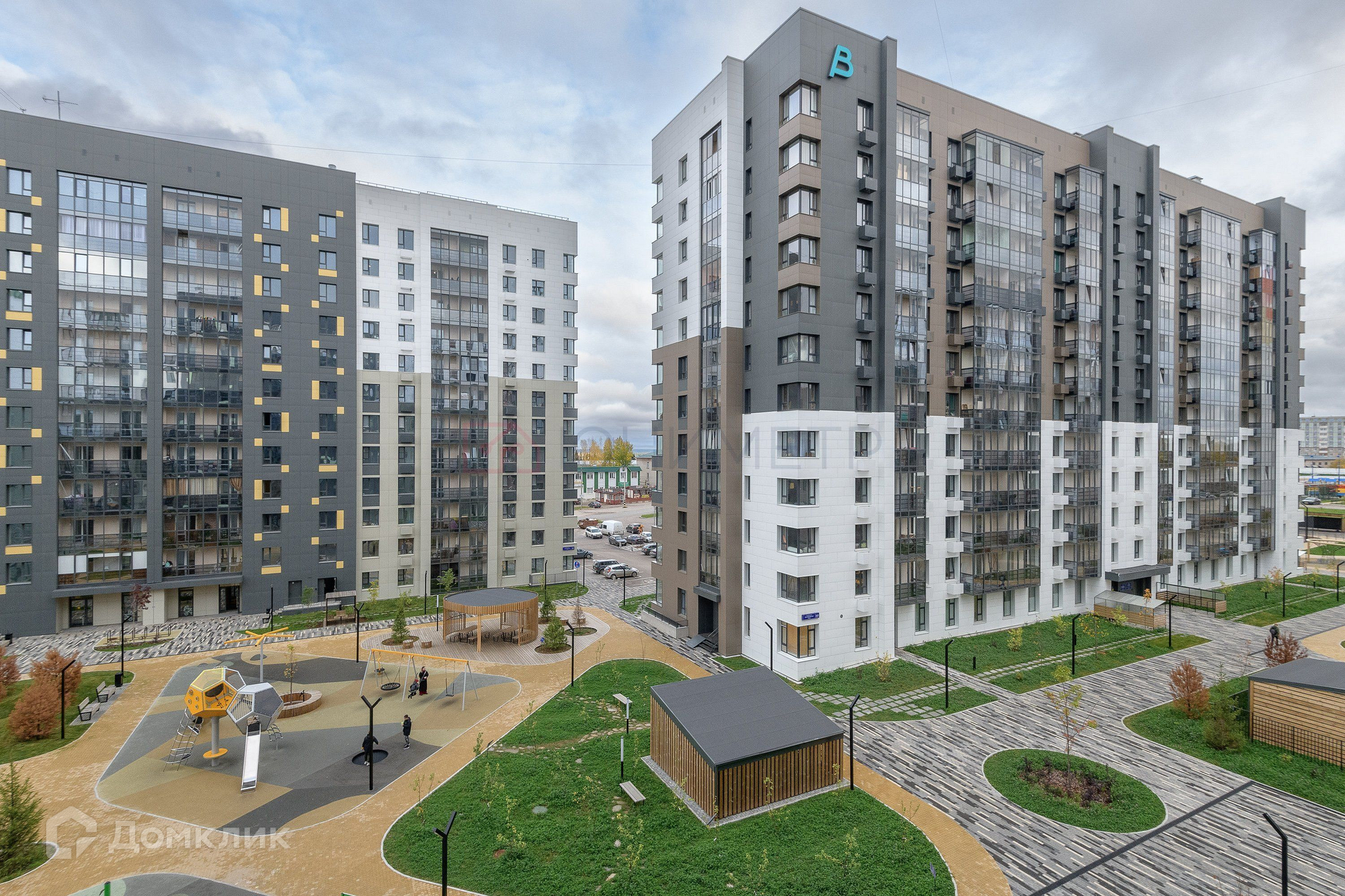 Двор оборудован современным спортивным оборудованием, детской площадкой, достаточным количеством парковочных мест. Сам ЖК расположен в уютном квартале, в котором сложилась вся необходимая инфраструктура для комфортной жизни: большое количество крупных магазинов, 2 амбулатории, удобная транспортная развязка.