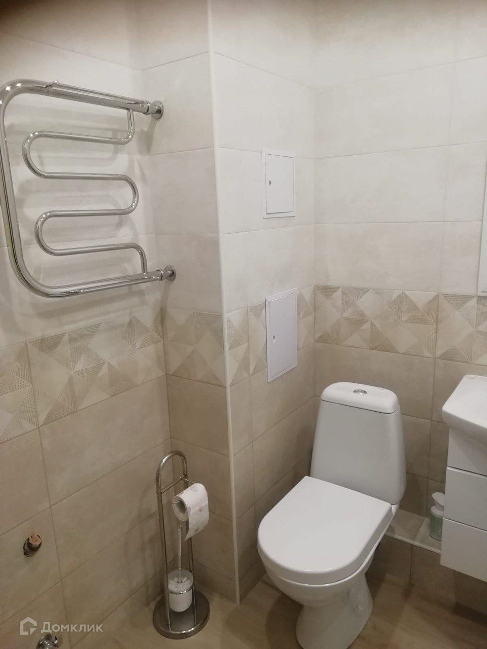 Совмещённый санузел в плитке.