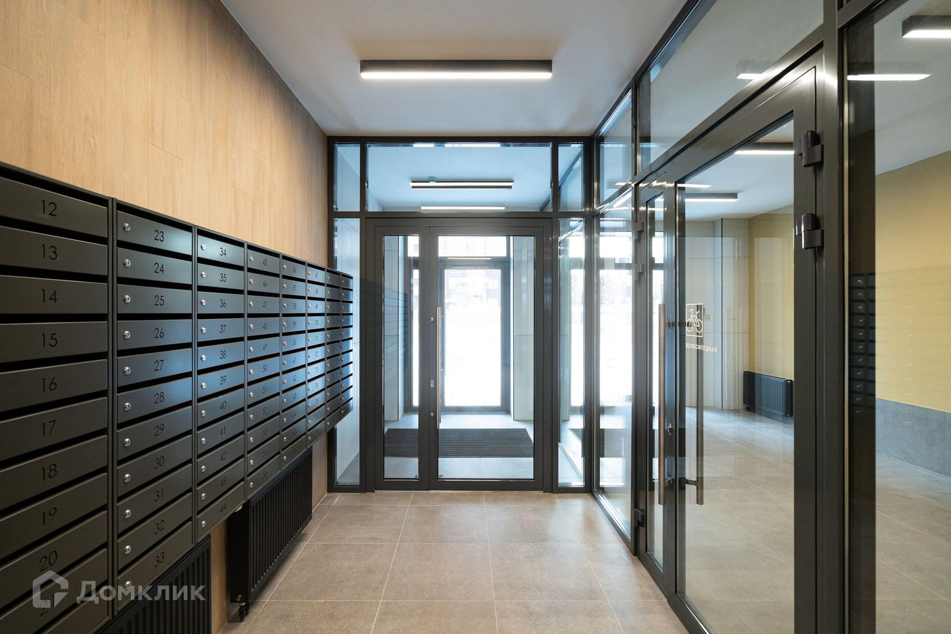 Вход в подъезд на уровне земли, без неудобных лестниц и лишних порогов, просторные стеклянные холлы с велосипедными и колясочными