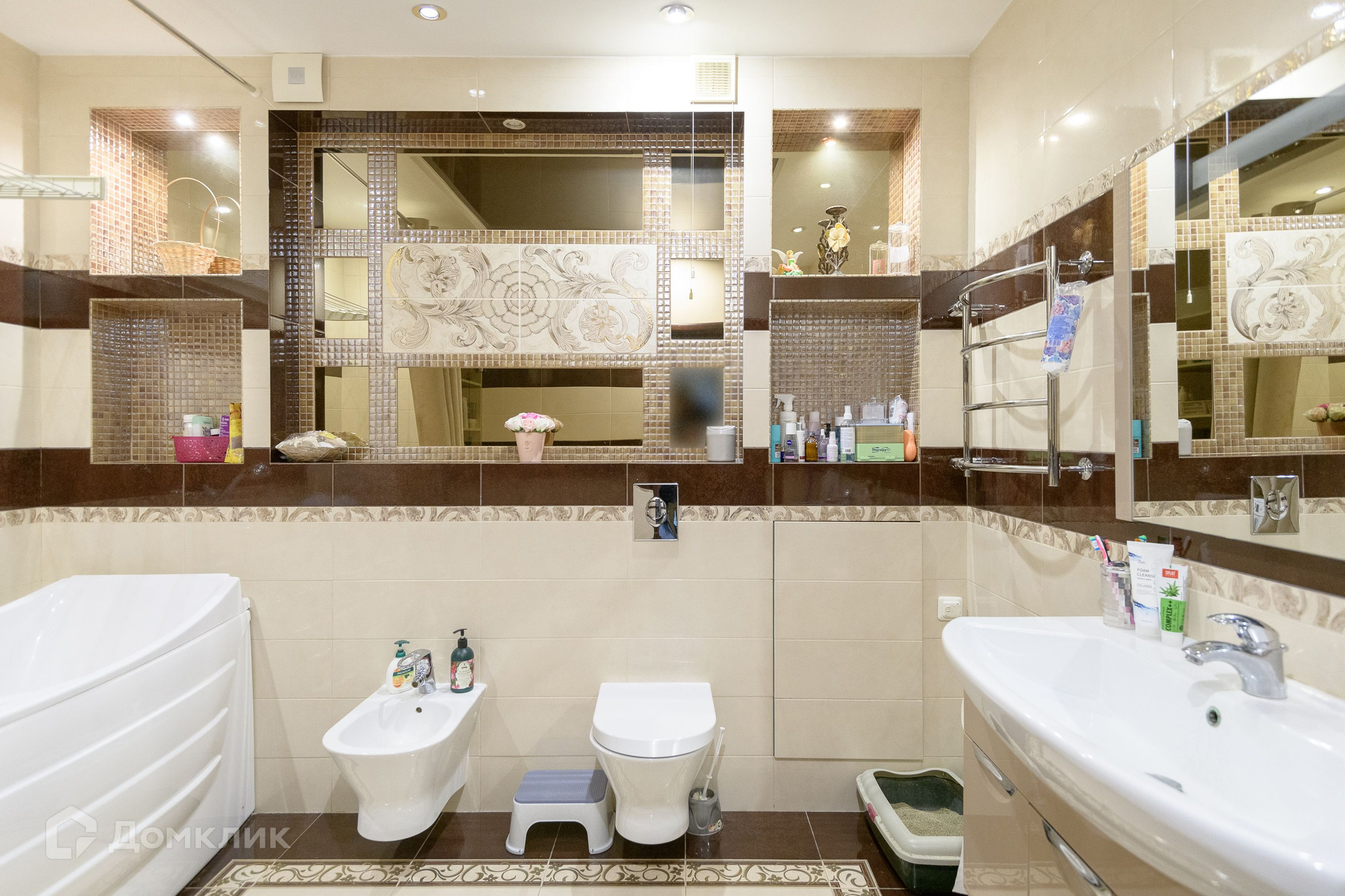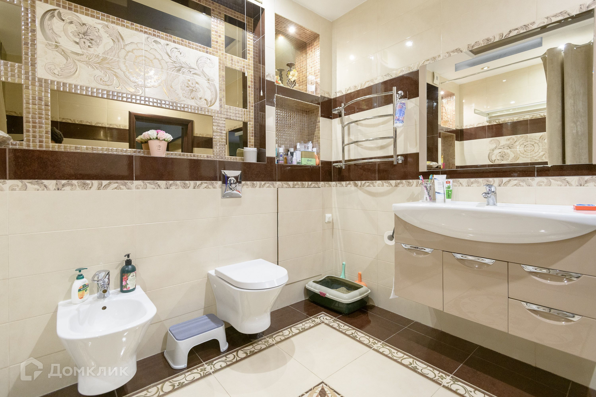 В квартире просторная кухня гостиная с угловым панорамным остеклением, 4 спальни, 2 просторных санузла, большая гардеробная, 2 лоджии.