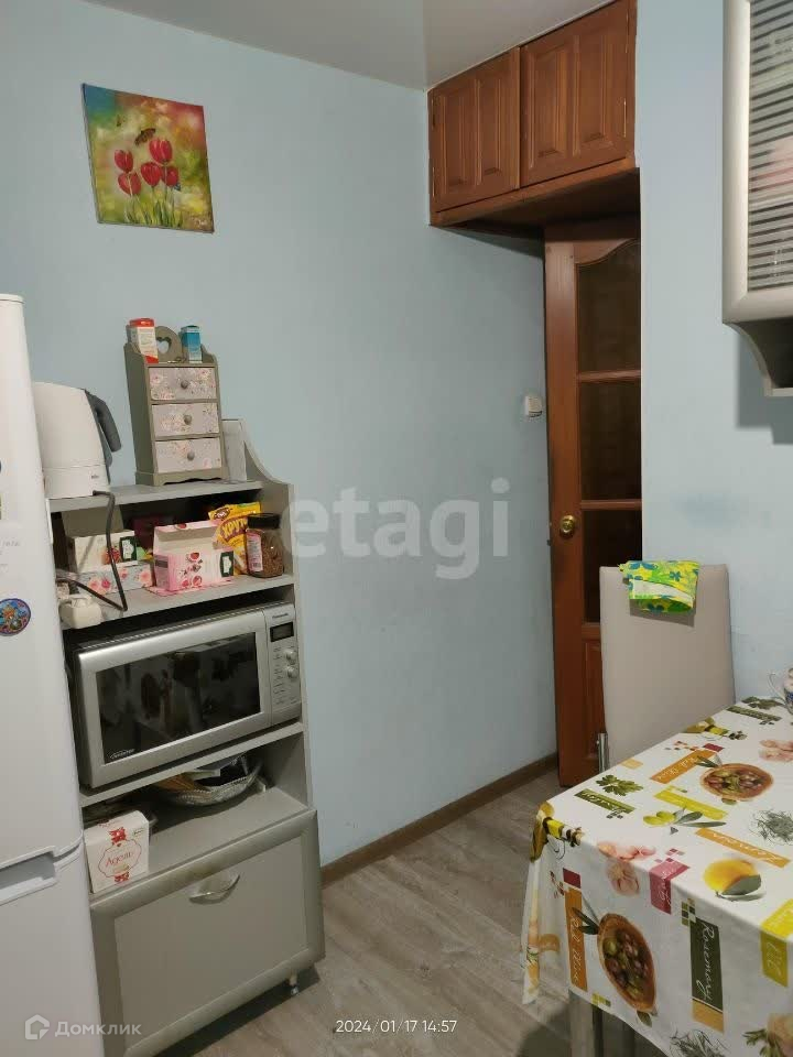 Покупателю остается мебель на кухне, а также стиральная машина, холодильник, шкафы.