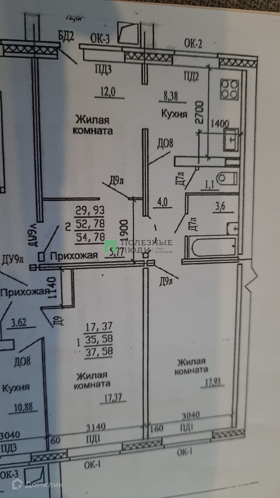 Общая площадь 52.8 м2