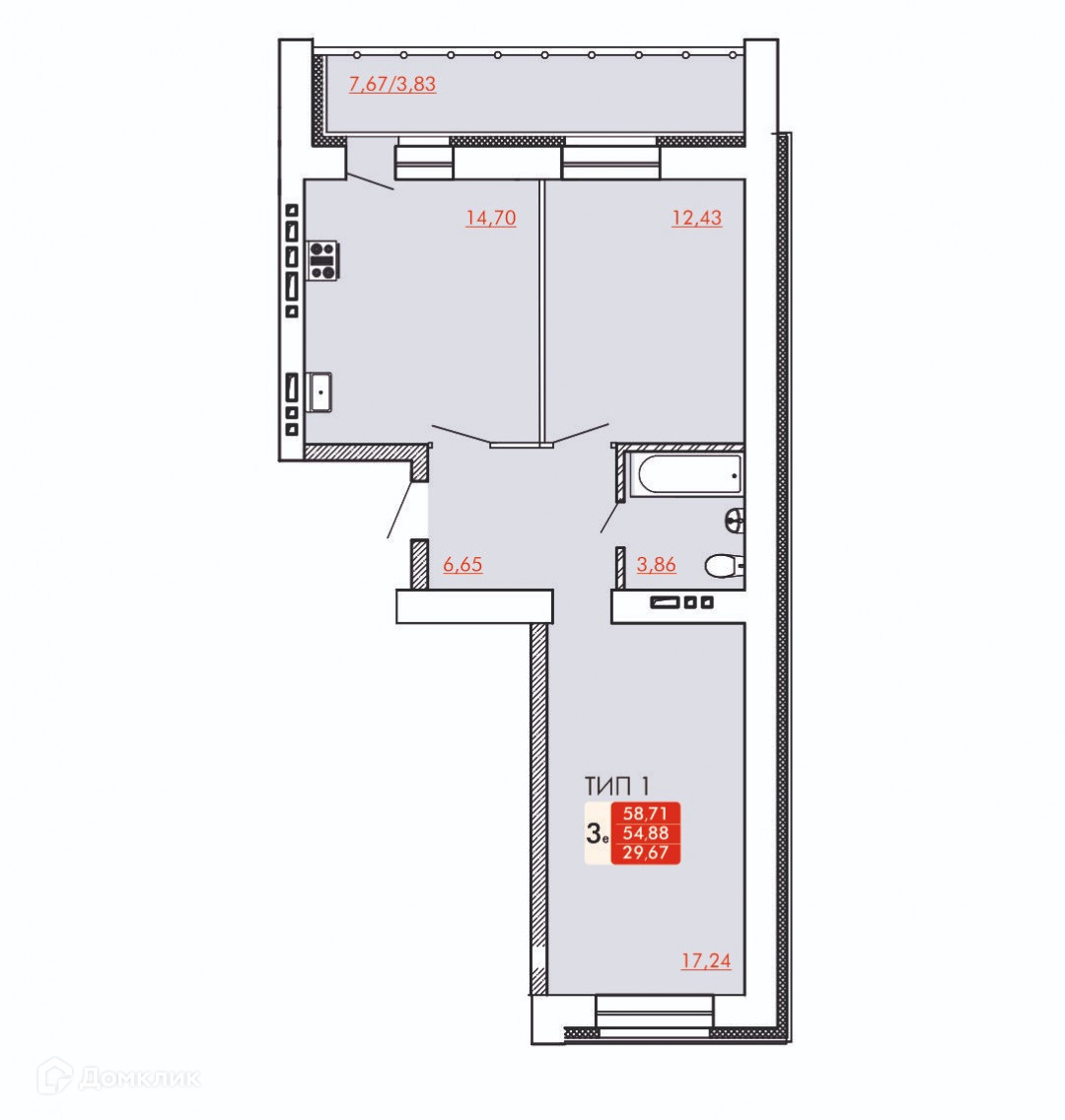 Общая площадь 58.71 м2