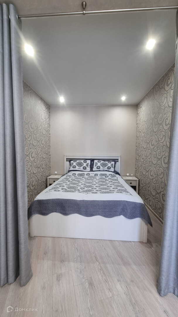 - В квартире есть выделенная зона спальни и гостиной, а также кухни