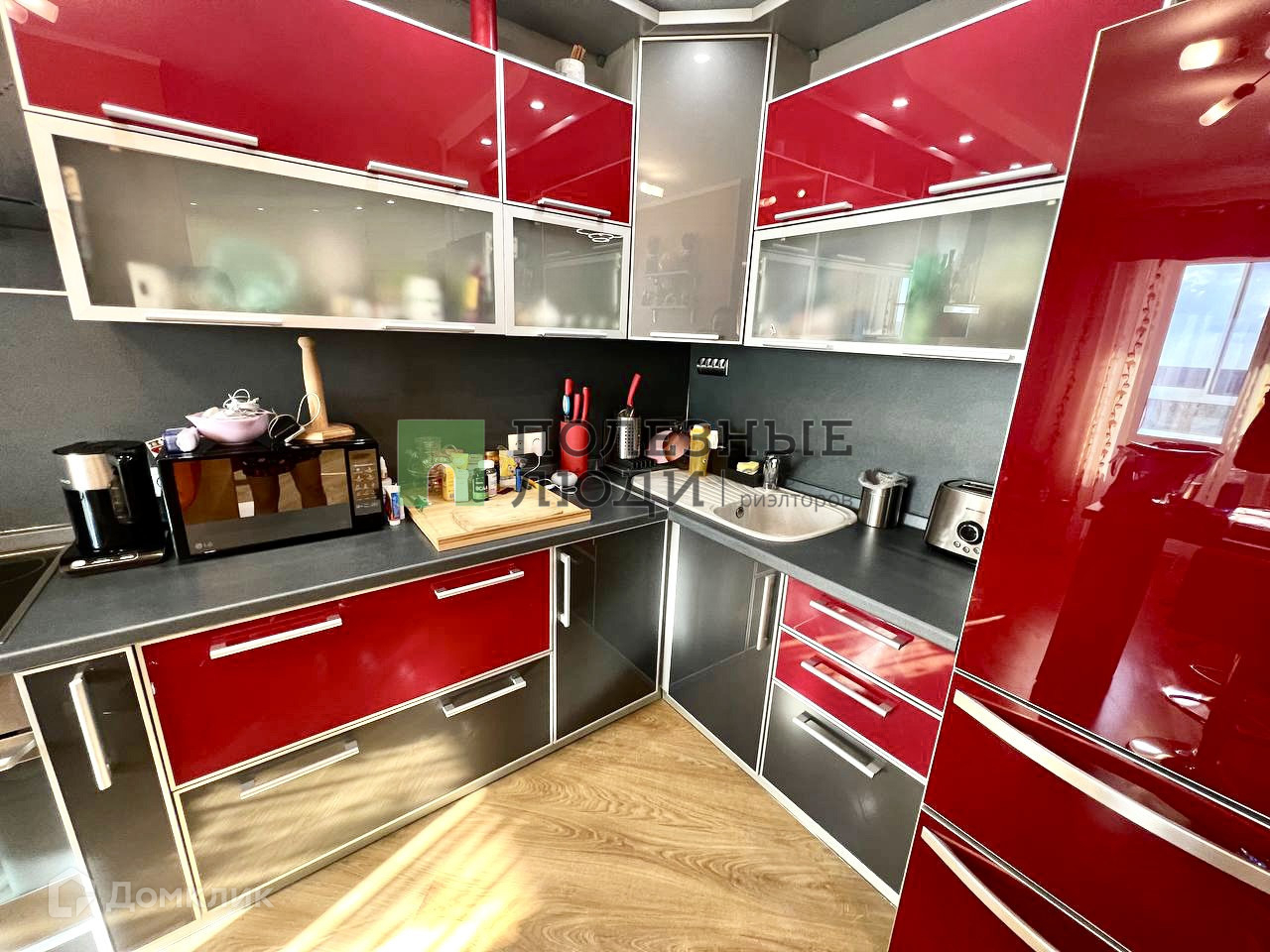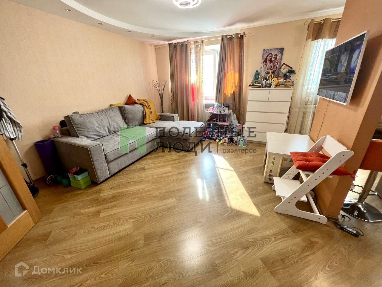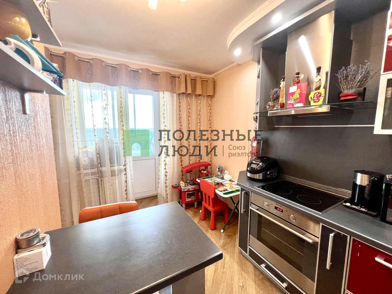 Остаётся встроенная кухня со встроенной бытовой техникой, и другая мебель, кроме детской.