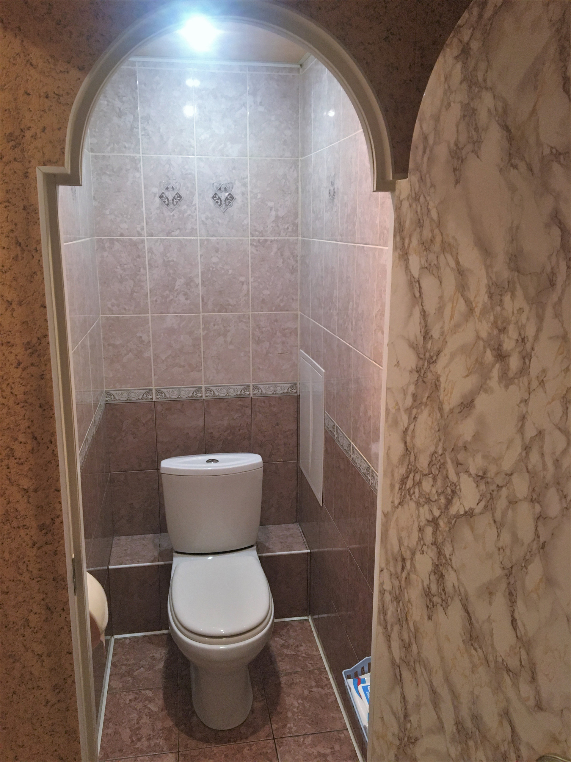 Тёплые полы в ванной и туалете.
