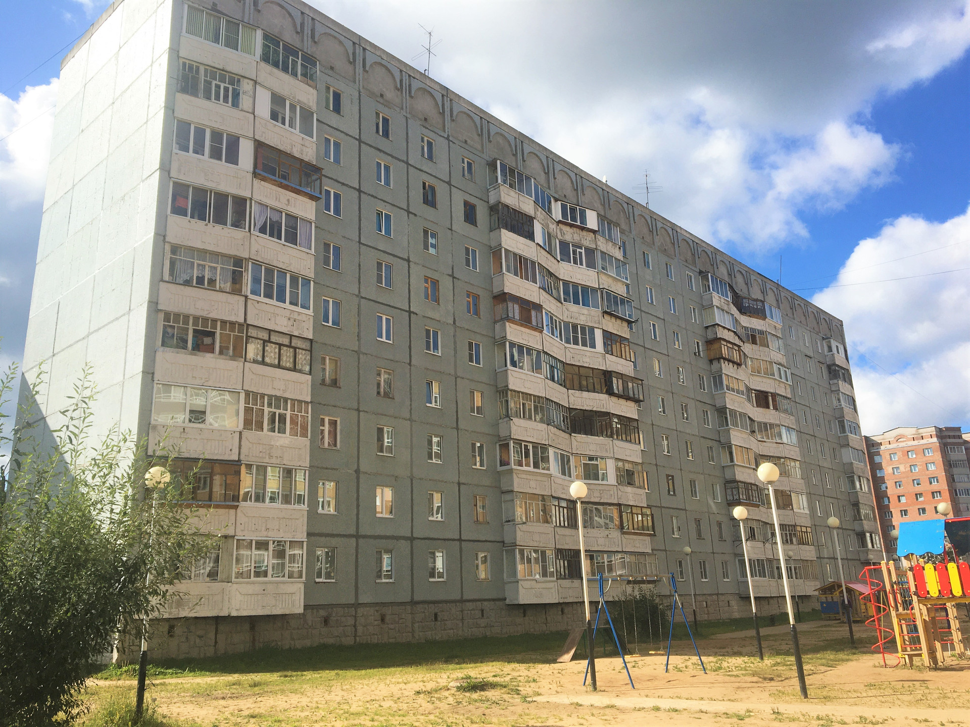 Bо дворе имеется современная игровая площадка.