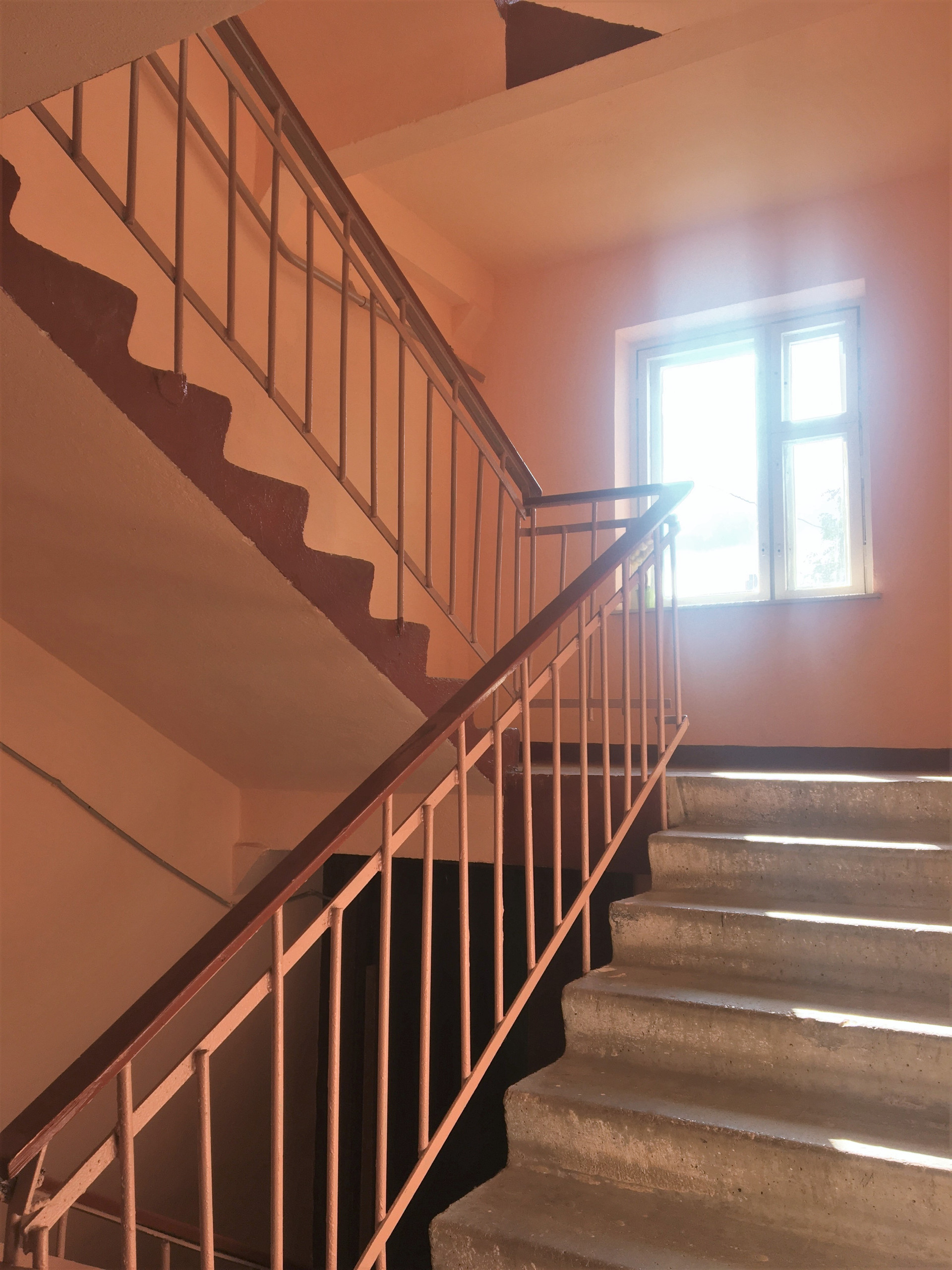 Чистый, ухоженный подъезд со свежим ремонтом.