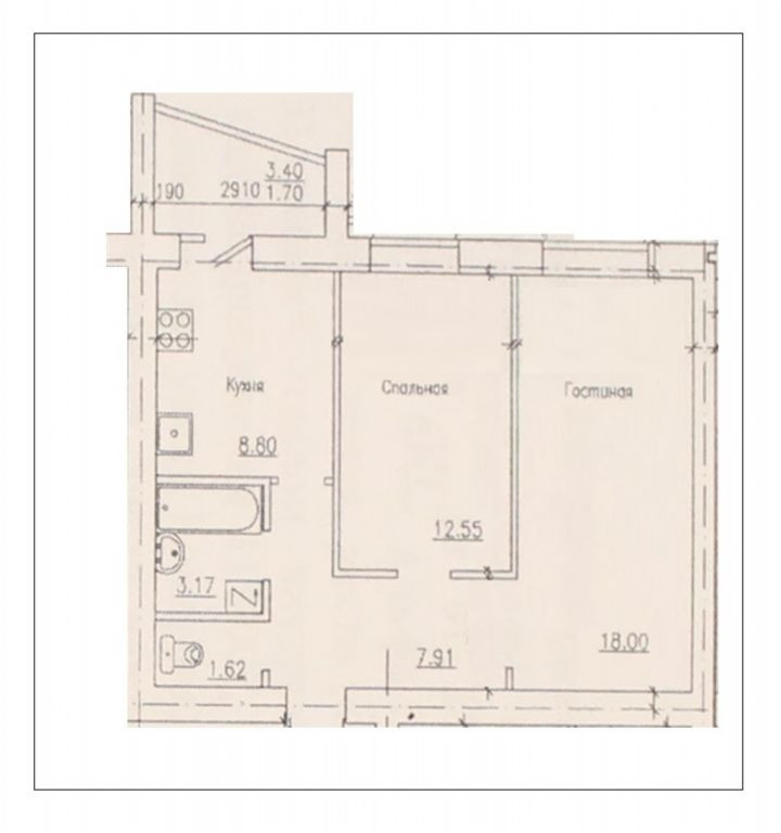 Жилая площадь 30.55 м2