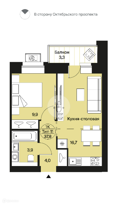 Общая площадь 37.8 м2