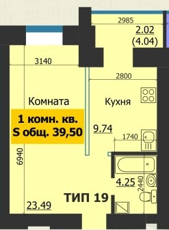 Общая площадь 40 м2