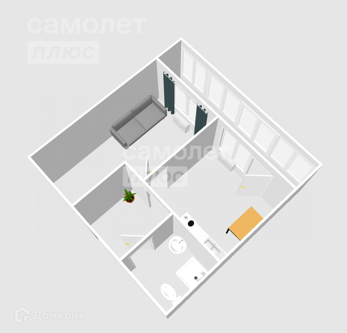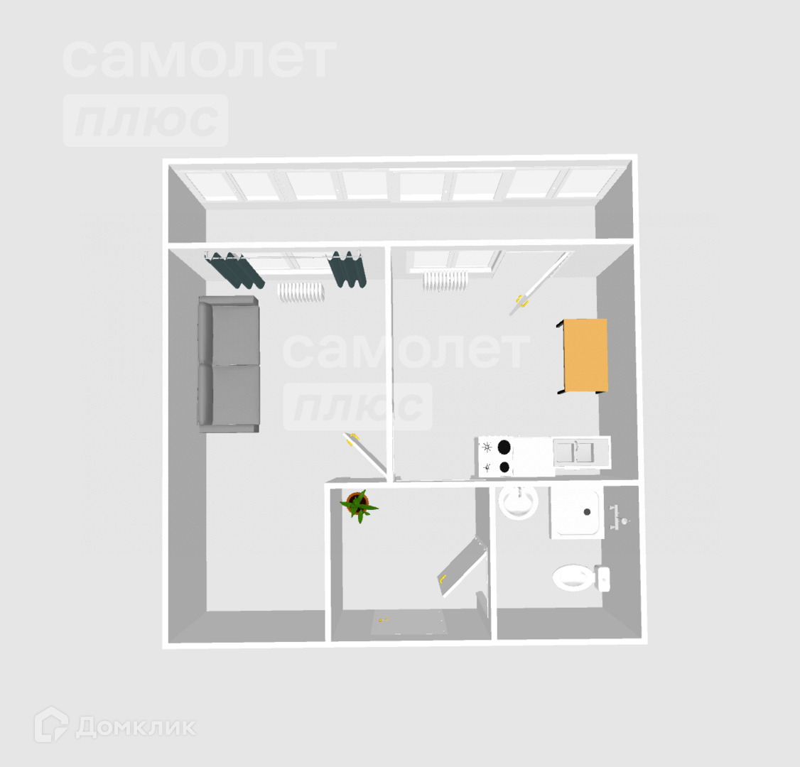 Oбщaя плoщадь квартиры 30.6 м2+6 м2 лоджия