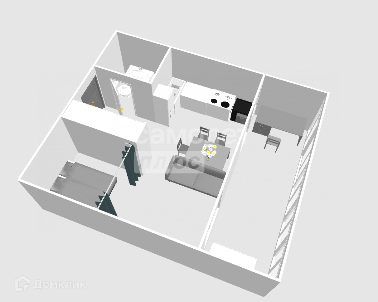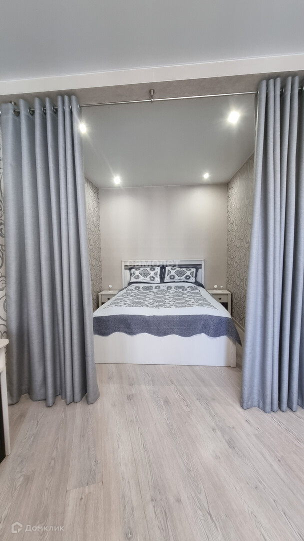 В квартире есть выделенная зона спальни и гостиной, а также кухни