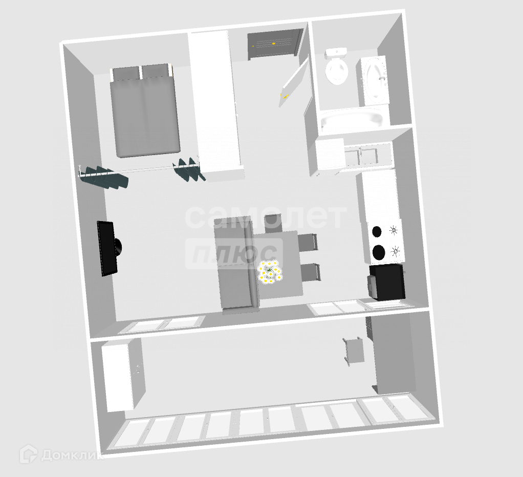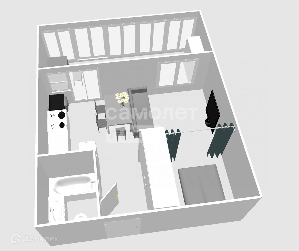 В квартире 2 окна, за счет чего много света и пространства