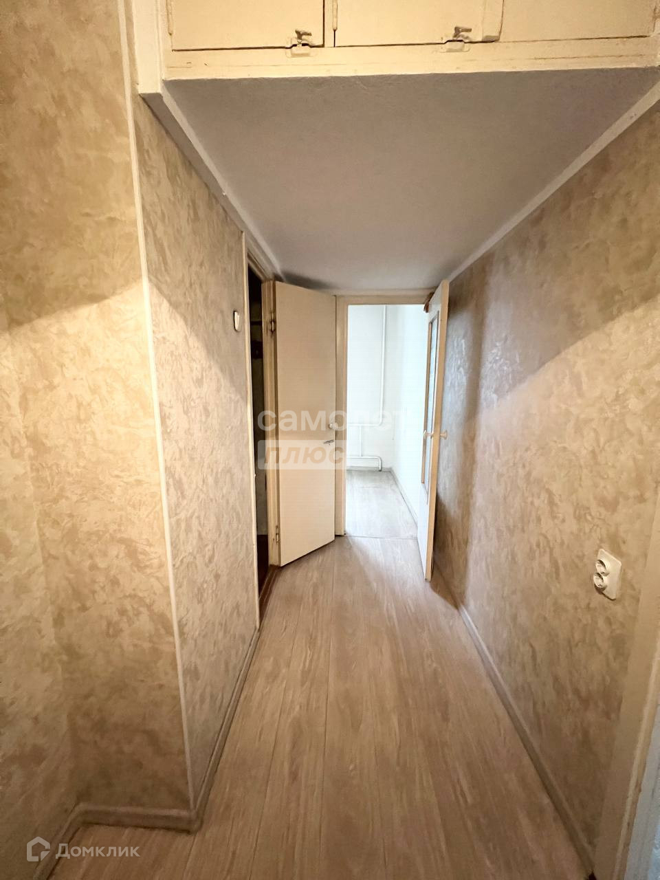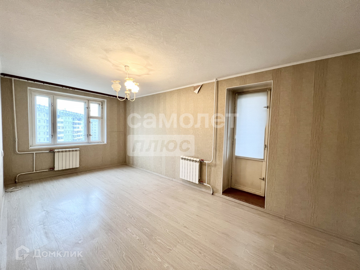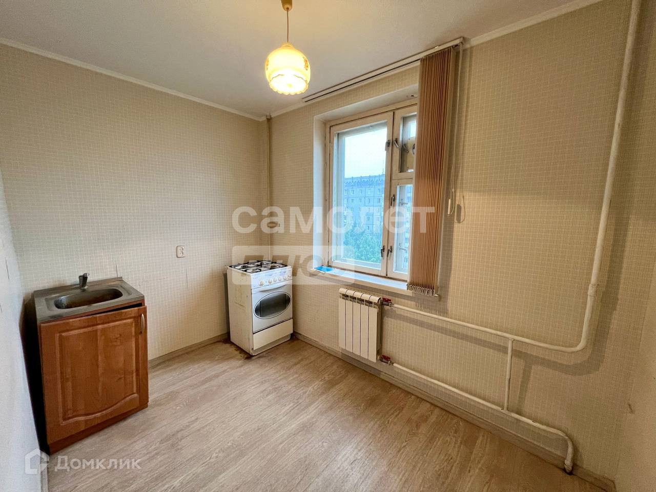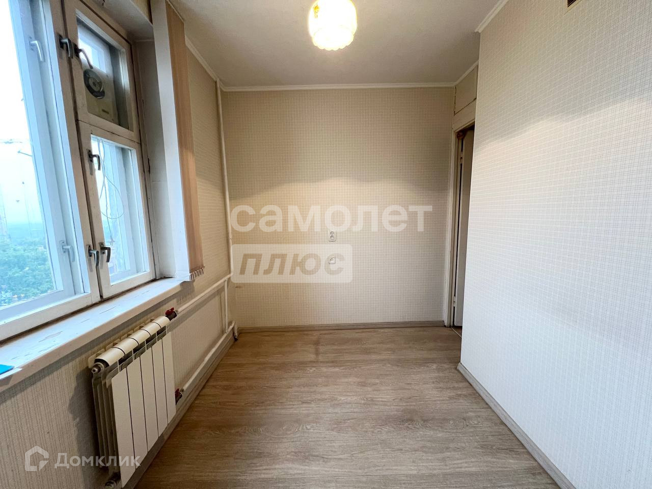 - в комнате постелен ламинат, на кухне линолеум,