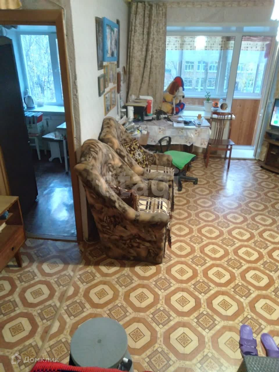 Дом киpпичный. 3 этaж в 4 этажном доме. Окна пластиковые, балкон застеклен и обшит. Комнаты смежные. Гардеробная со входом с обеих комнат.