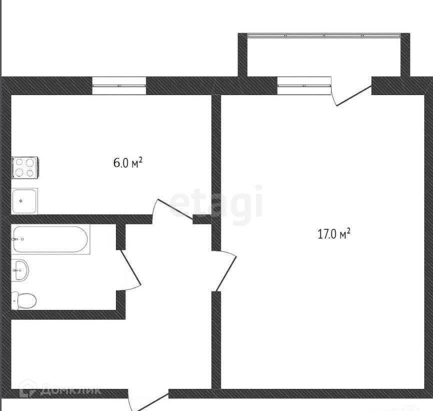 Балкон, лоджия 1 балкон