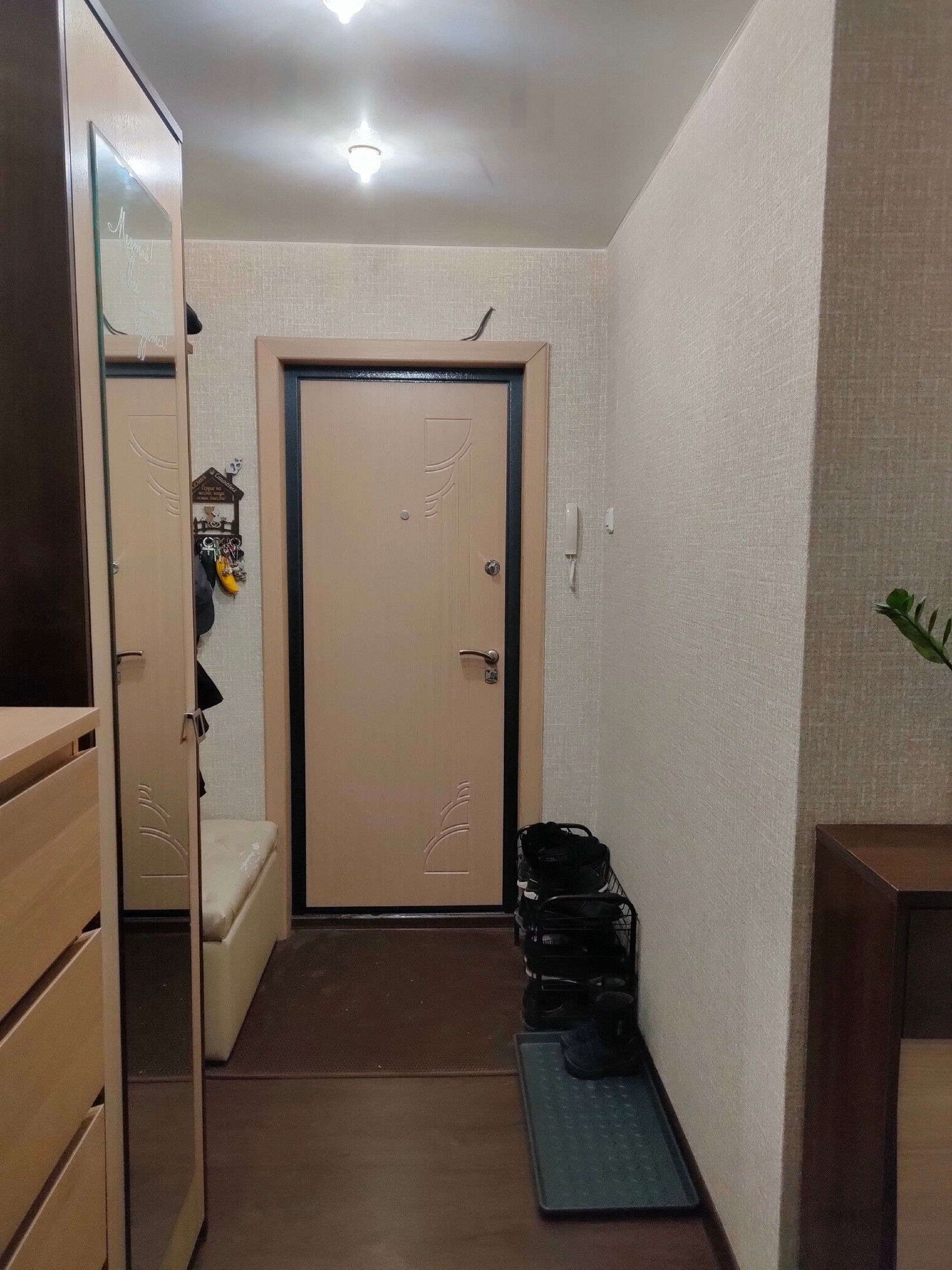 Квартира теплая, с удобной планировкой, дом кирпичный, окна - стеклопакеты, ванна в кафеле, натяжные потолки, на полу ламинат, хорошие межкомнатные двери. Качественная входная дверь. Лоджия 3,5 кв.м. Остаётся кухонный гарнитур, шкаф-купе в комнате (почти новый, установлен недавно), прихожая. В квартире не содержались животные.