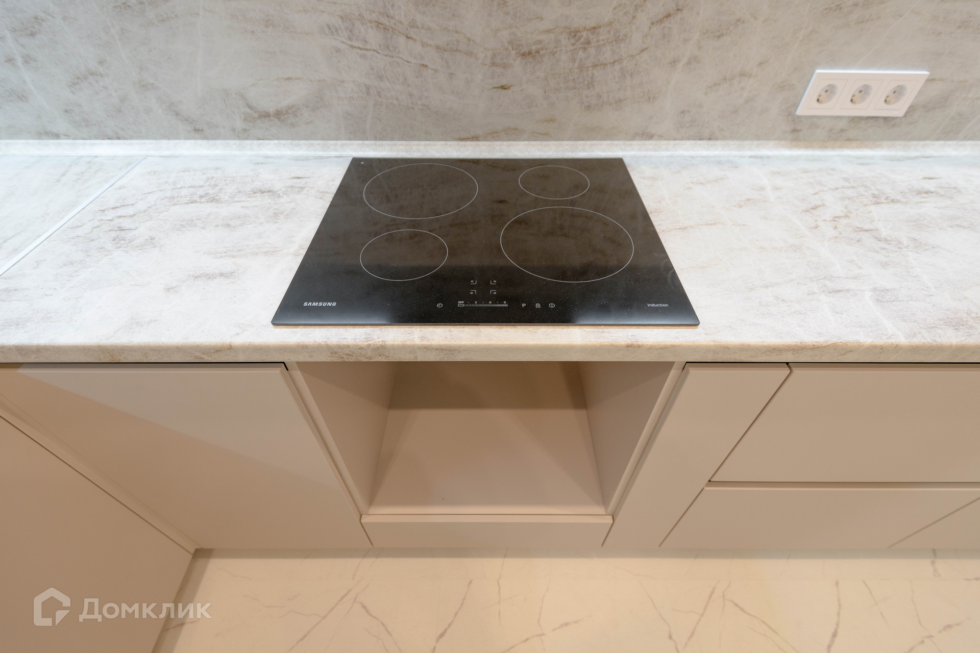 Надёжная входная дверь, кварцевый ламинат Home Expert Rock-Ivory, керамогранит в санузлах и на кухне в обеденной зоне, матовые натяжные потолки, полная разводка розеток и освещения.
