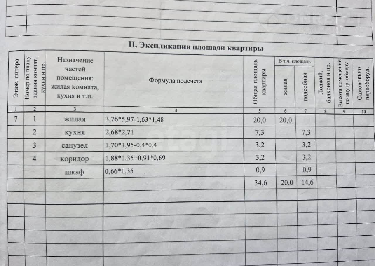 Общая площадь 34.6 м2