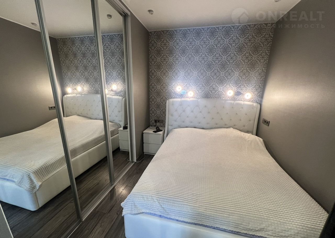 Отдельно выделенная спальная зона. Все продумано до мелочей и выполнено под заказ-от отделочного камня на полу, до встроенного питьевого фильтра для воды. Достаточное количество грамотно встроенных шкафов . По периметру квартиры -встроенный второй свет (цвет которого управляется).