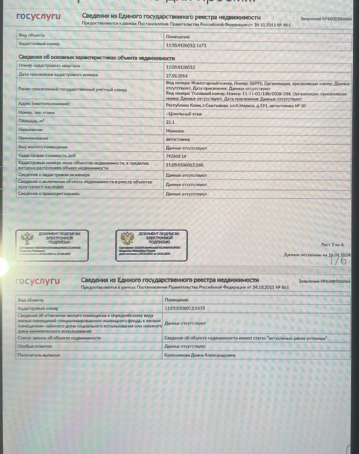 Машиноместо в подземном паркинге, 21 м2, на продажу в Сыктывкаре, улица Карла Маркса, 191