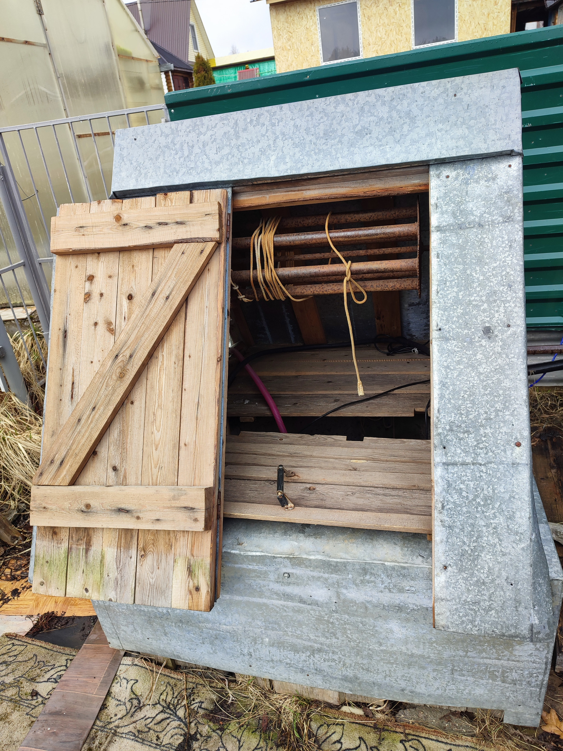 На участке закрытый колодец с питьевой водой с насосом.