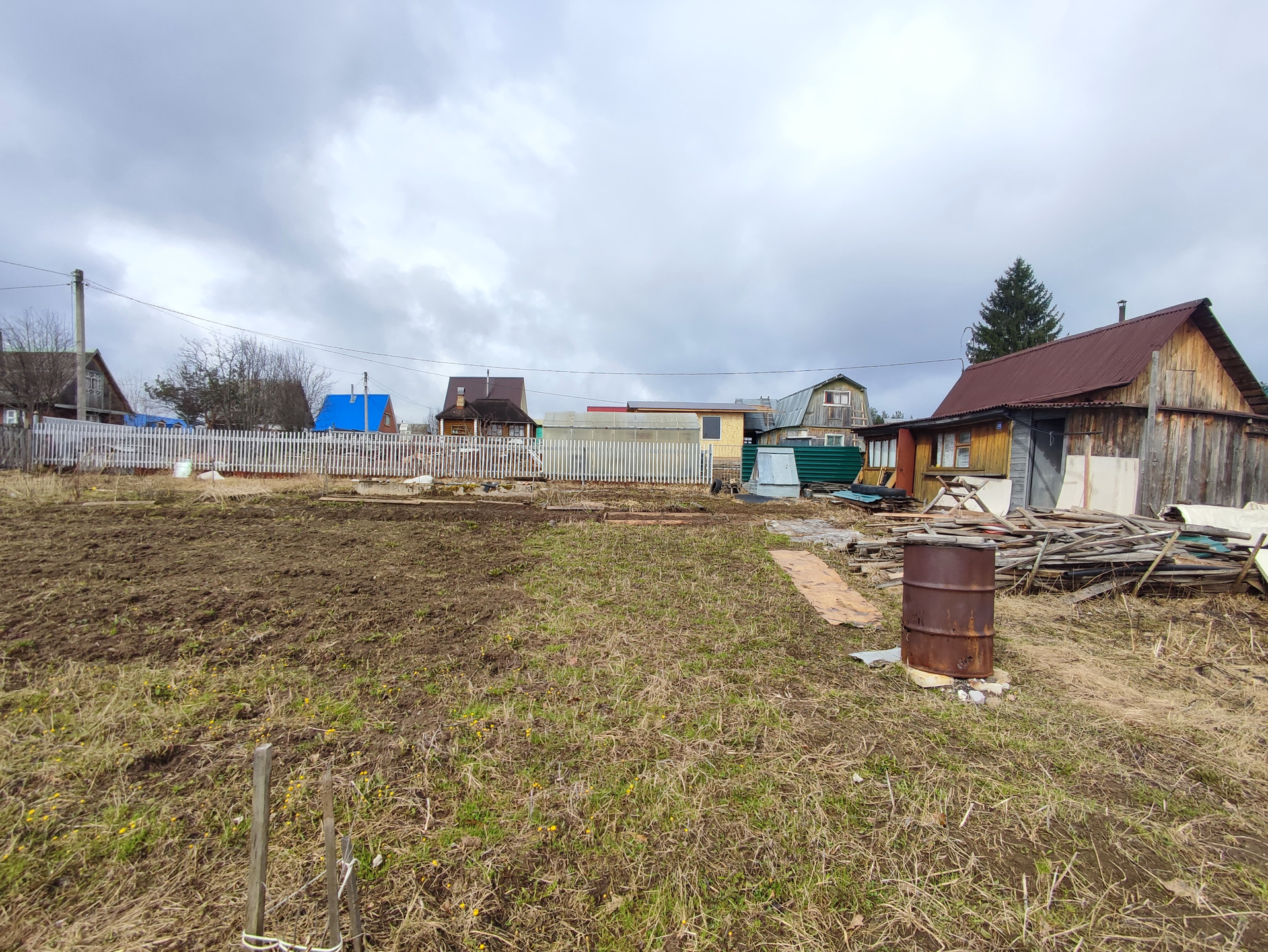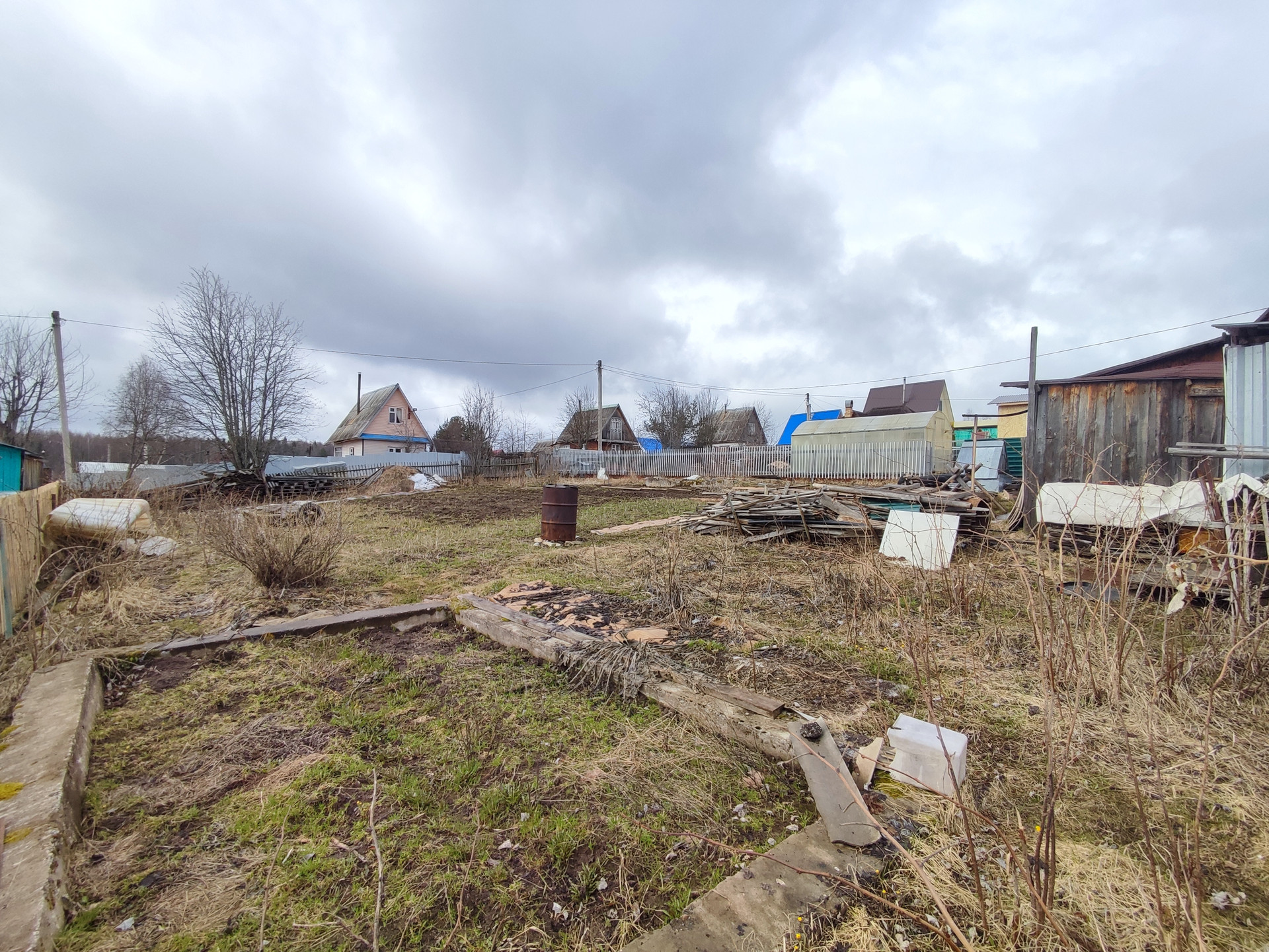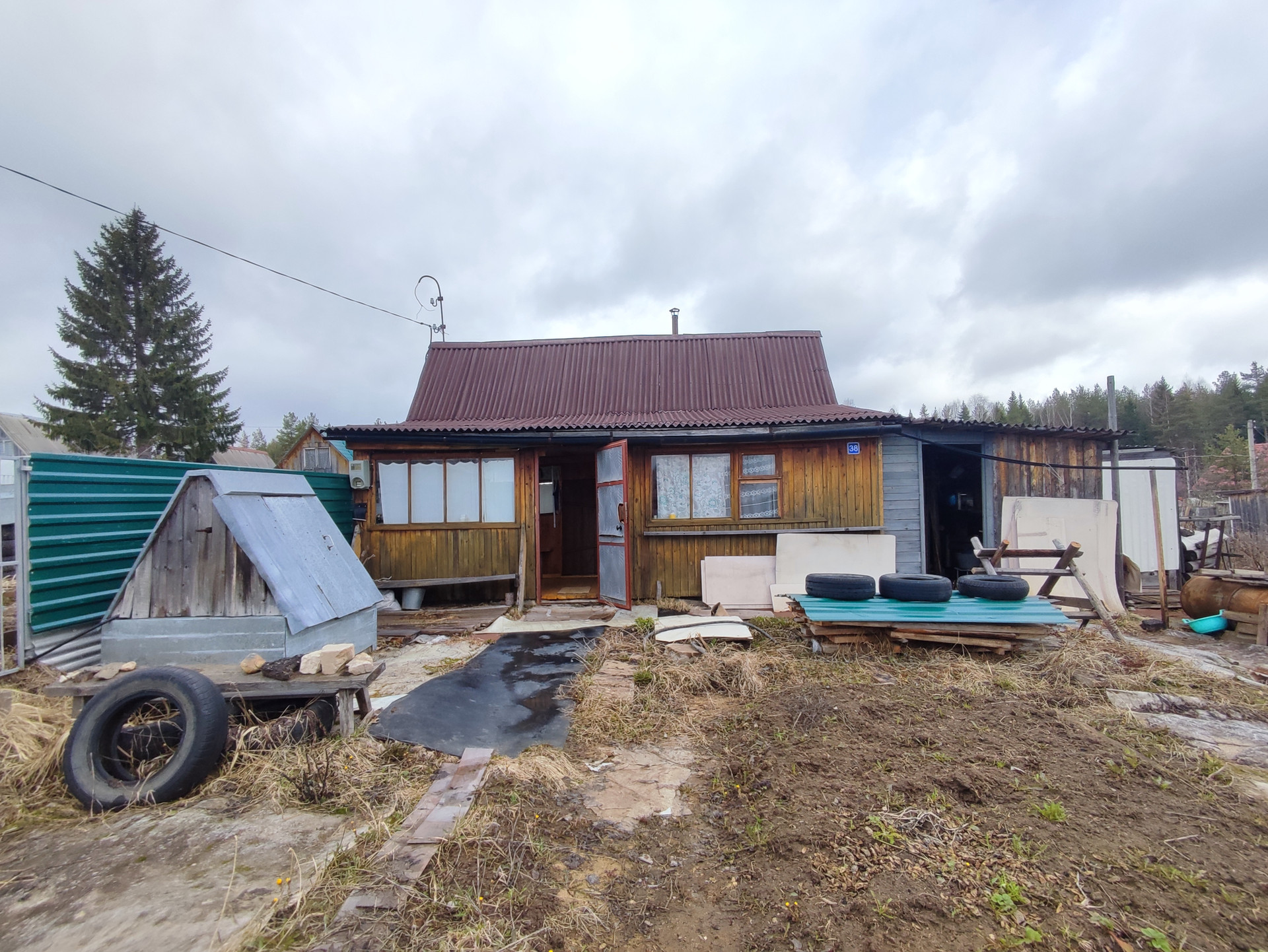 На участке имеются дрова и несколько кубов песка.