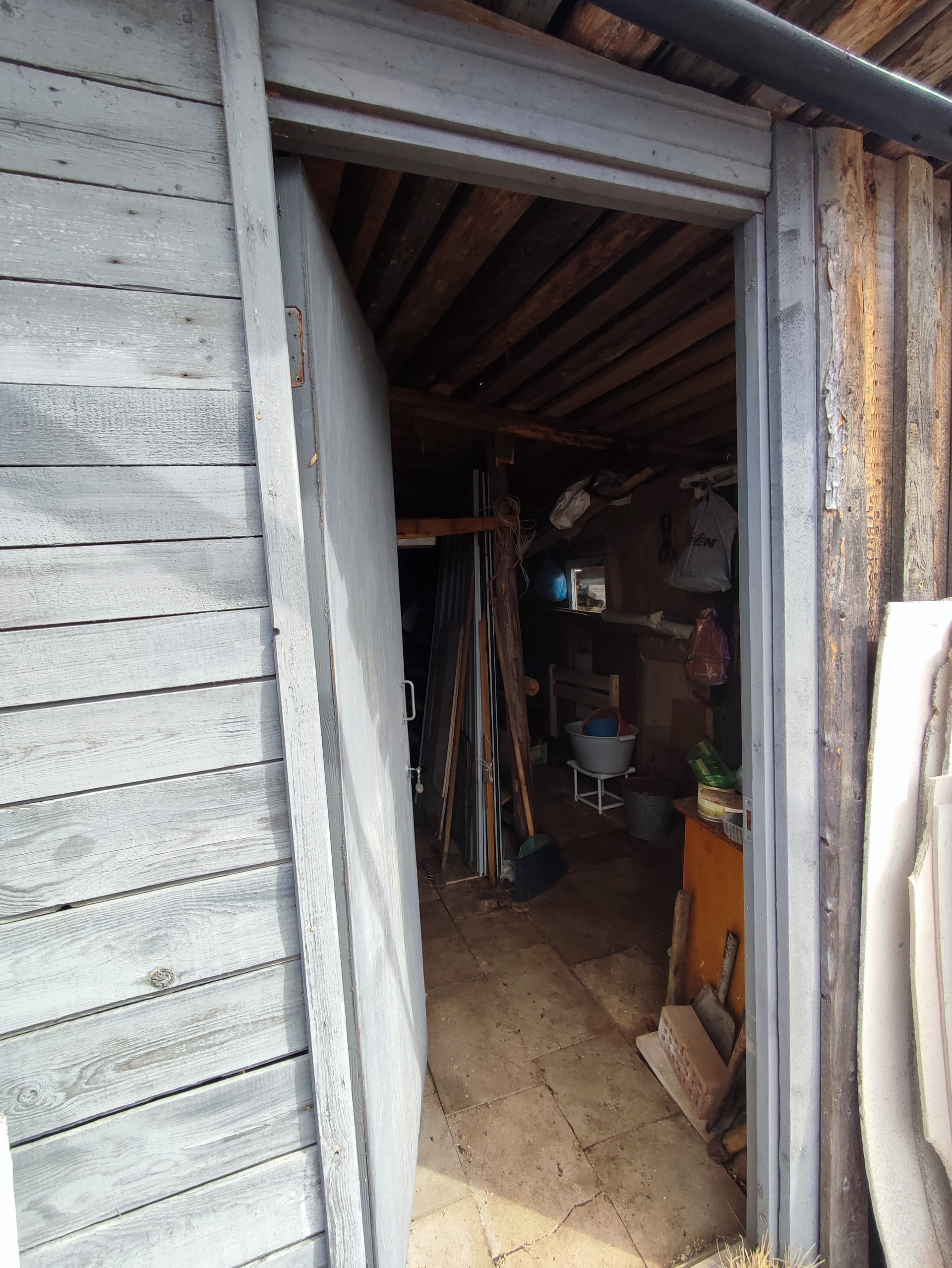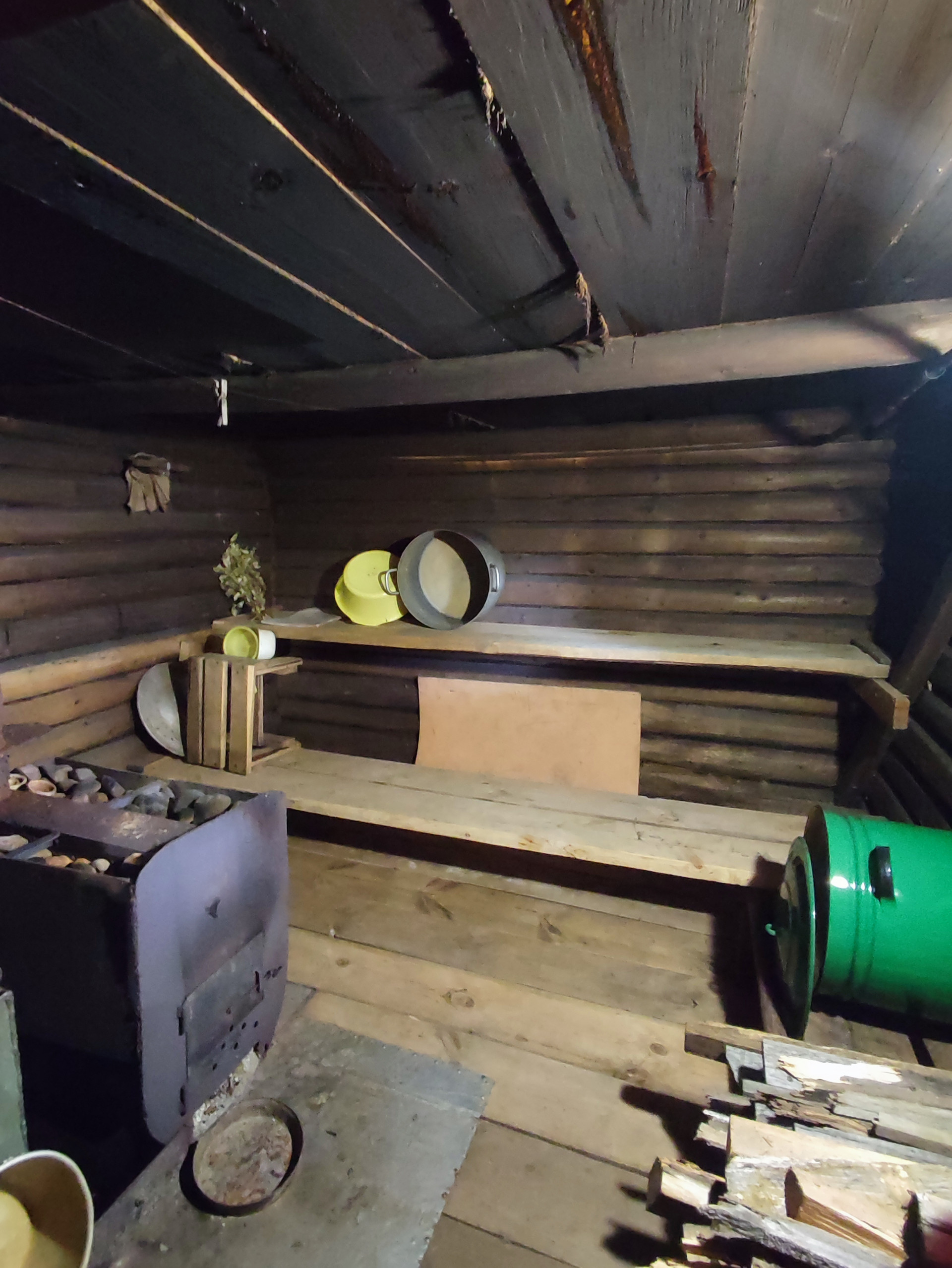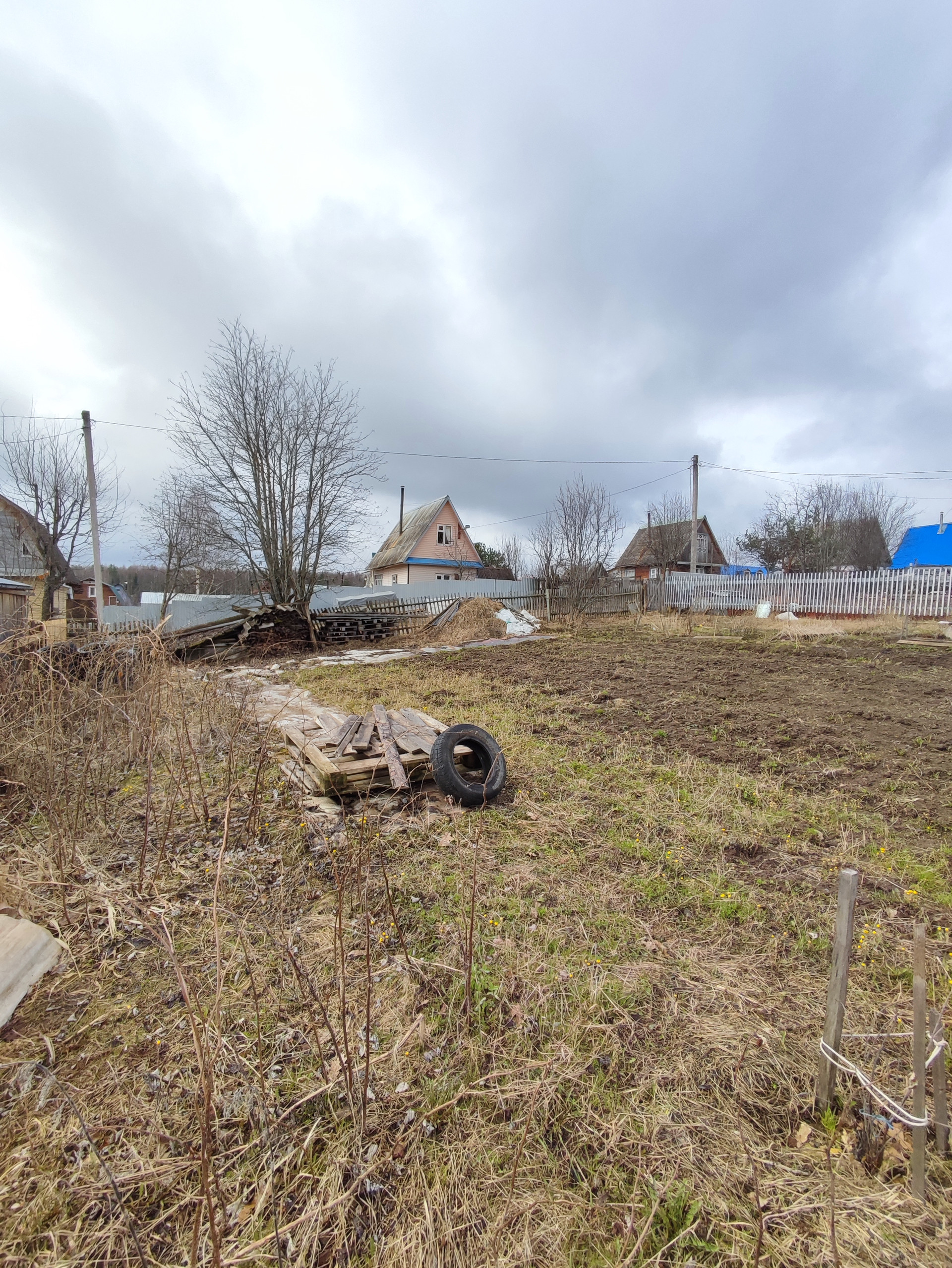 На участке имеются дрова и несколько кубов песка.