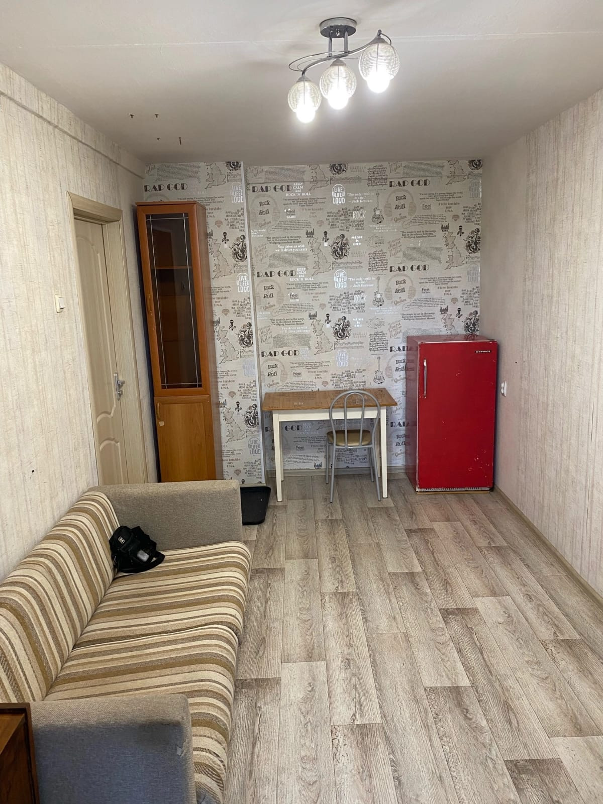 Комната с хорошим ремонтом с мебелью и холодильником.